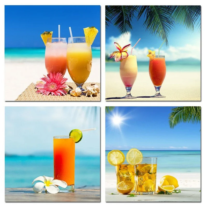 5d Алмазная мозаика, полная Алмазная вышивка, 4 шт., Летний пляж, фруктовый сок, квадратная алмазная живопись, вышивка крестиком