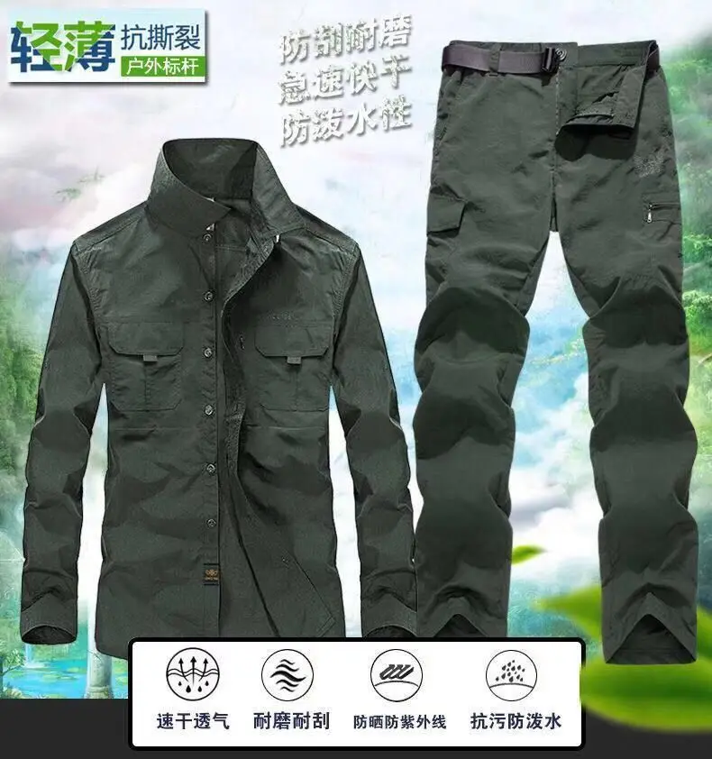 Брюки-карго, Мужская Уличная быстросохнущая рубашка, Мужская военная форма, короткие рукава, водонепроницаемая тактическая рубашка, спортивный костюм