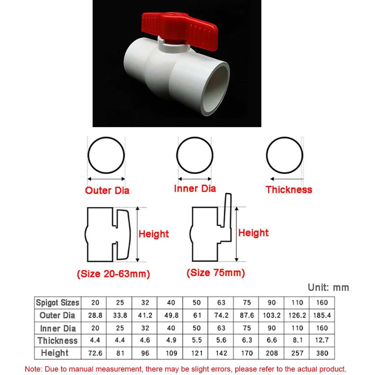 Шаровой клапан из ПВХ 【метрический + империал】 (круглый тип + красная ручка)