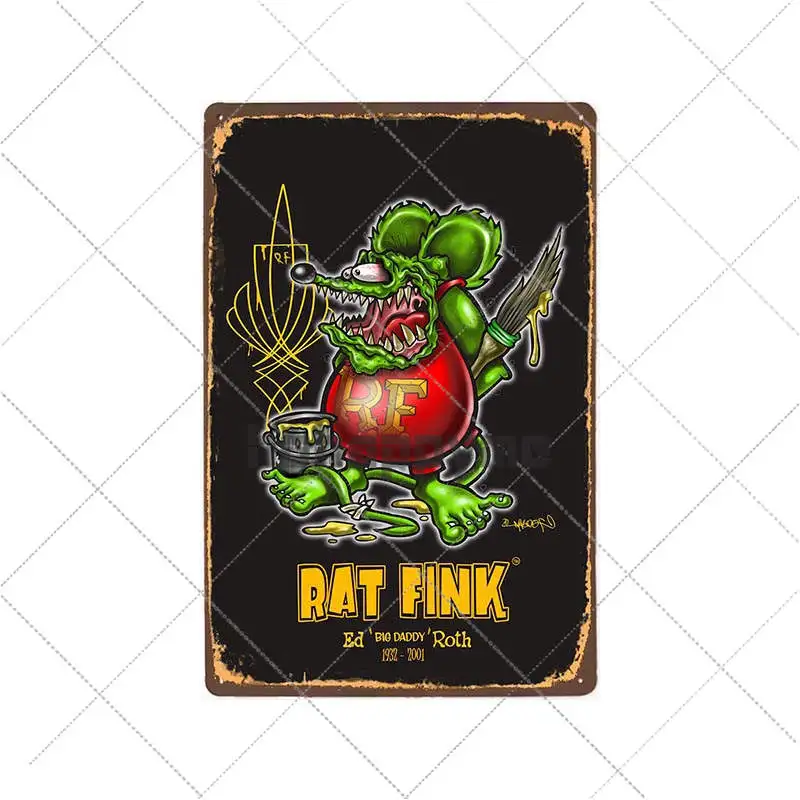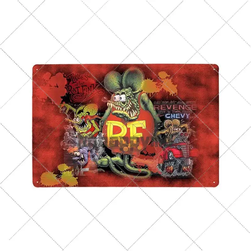 Винтажная металлическая вывеска Rat Fink, настенный постер для гаража, декоративное украшение для магазина, бара, паба, клуба, 20 х30 см