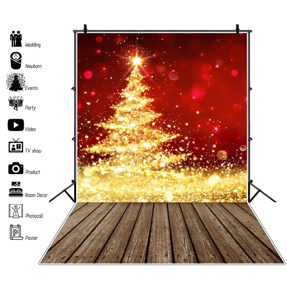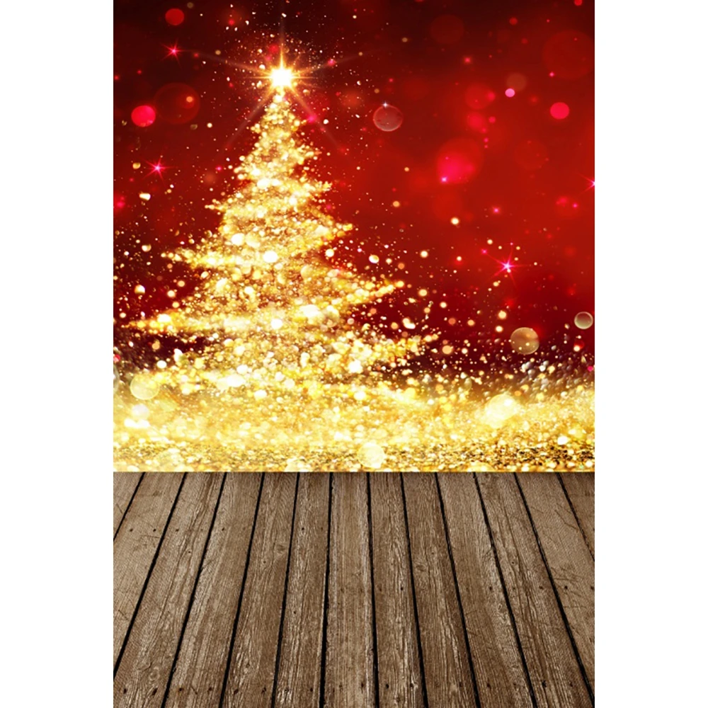 Виниловый фон для фотосъемки с изображением рождественской елки золотых горошек блестящего деревянного пола