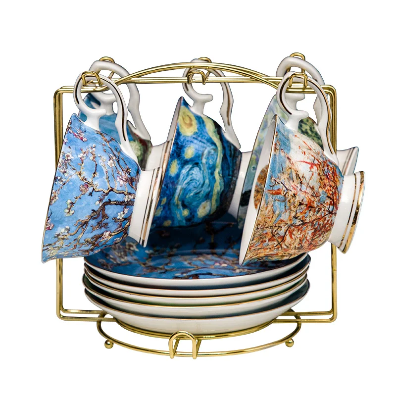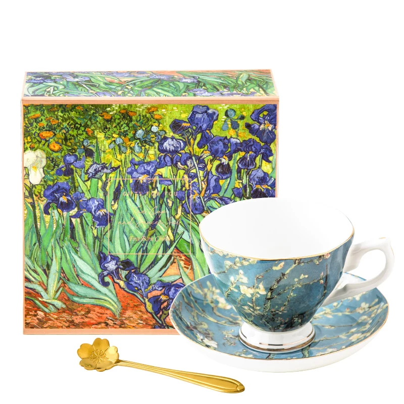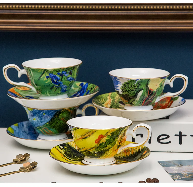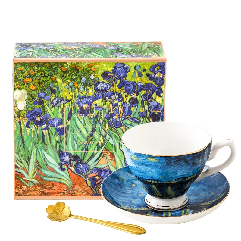 Кофейные кружки с ложкой и рисунком Ван Гога, креативные чашки для пасторального цветочного чая, цветные чашки для послеобеденного чая, посуда для напитков AF50BD