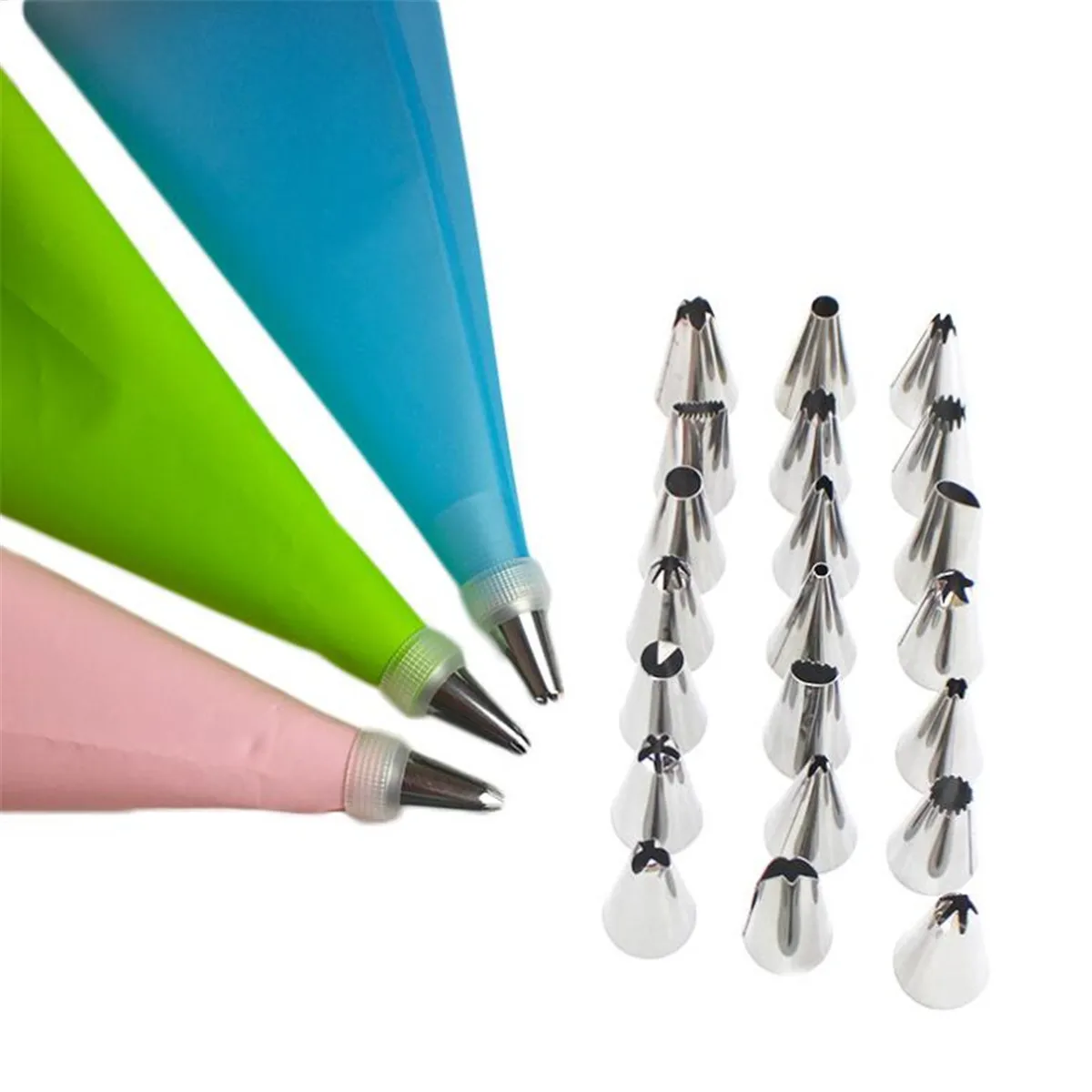 26 шт.компл. инструменты для украшения торта 24 шт. наконечники для обледенения трубопроводов + силиконовые кондитерские мешки для крема конвертер насадок для помадки