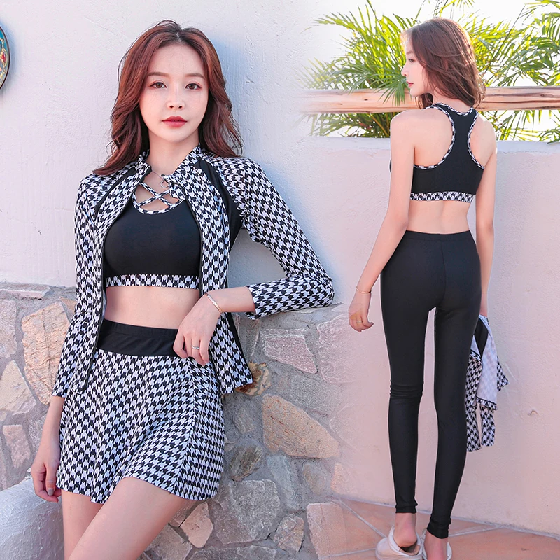 Женский спортивный купальник из 5 предметов, пикантный купальный костюм с длинным рукавом, пляжная одежда, летний женский купальник 2020