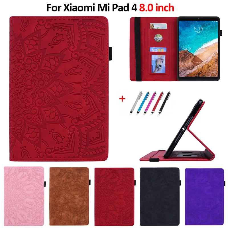 Принципиально для Xiaomi Mi Pad 4 Чехол 8,0 дюймов Цветок 3D с тиснением и изображением искусственная кожа Стенд планшеты для Xiaomi Mi 4 Mi Pad 4 чехол + подставка для ручек