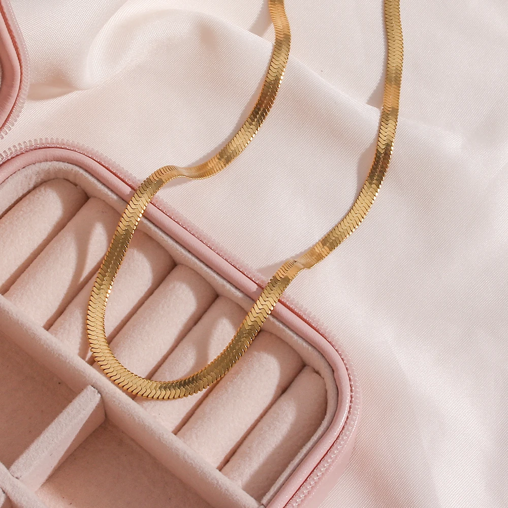 Цепочка-чокер из нержавеющей стали, позолоченная 18 карат, короткая цепочка в елочку, ожерелья для женщин, минималистичное золотое ожерелье-цепочка