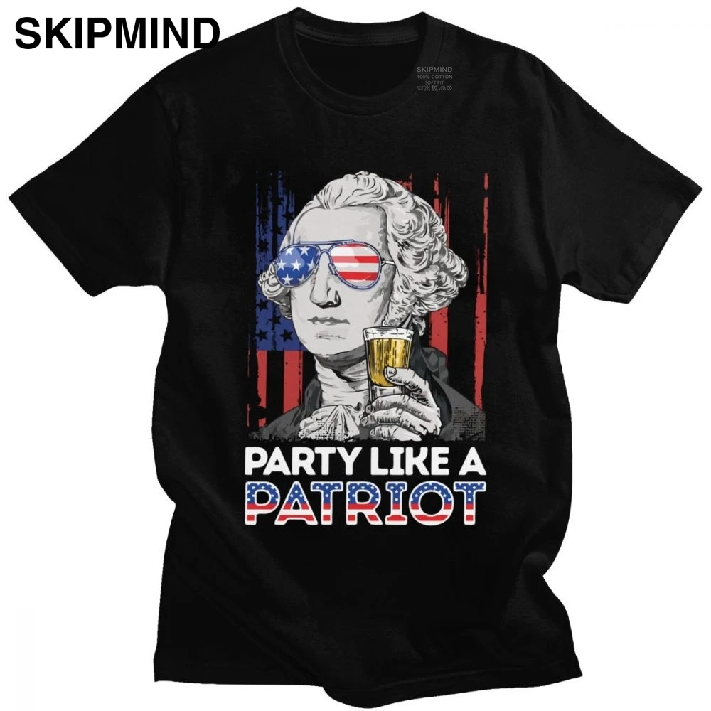 Крутые мужские футболки из хлопка с коротким рукавом с изображением Джорджа Вашингтона, футболка Beer, забавная футболка вечерние рисунком, вечеринка как подарок футболка патриота