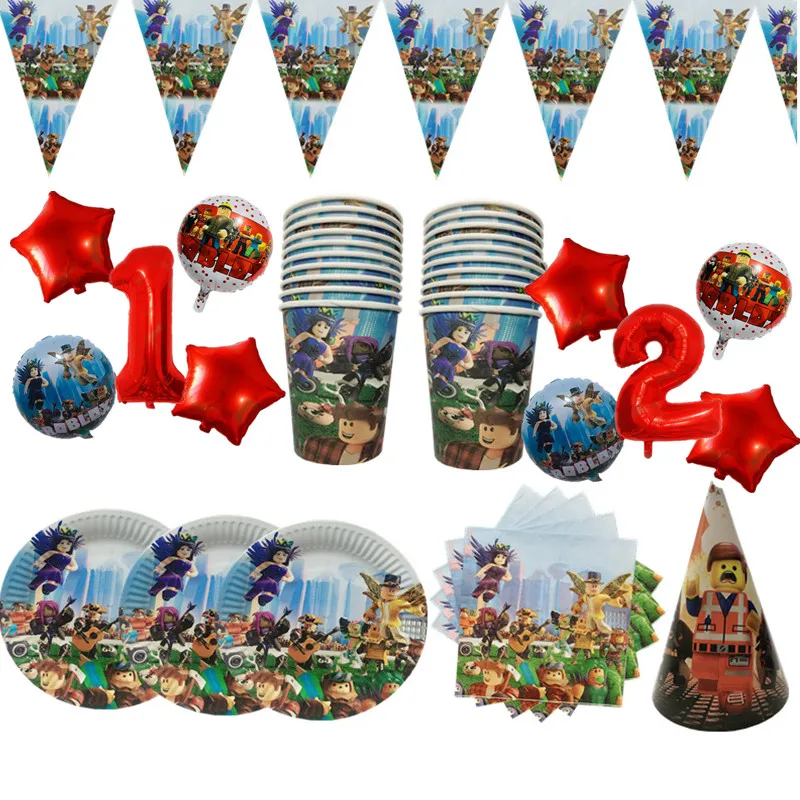 Игровые тарелки roblo, баннер салфетки для стаканчиков, украшение для вечерние, подарок для детей, набор одноразовой посуды, свадебное украшение