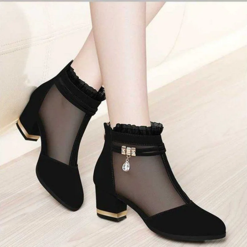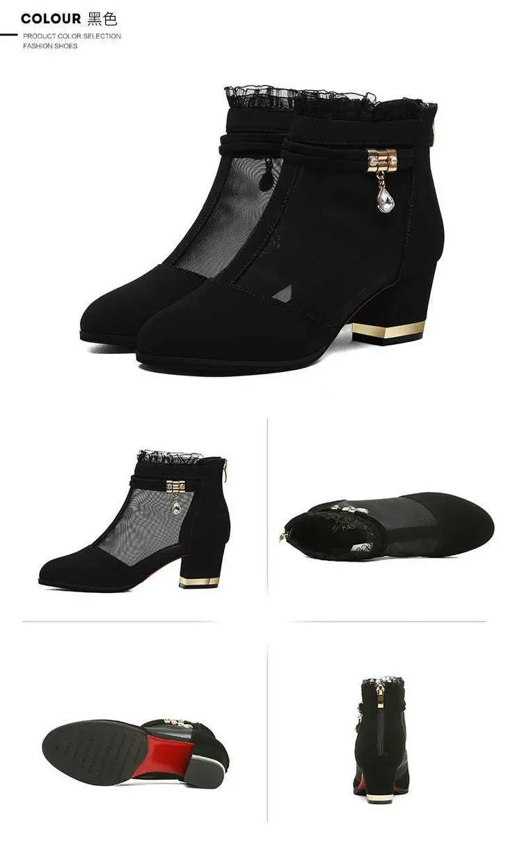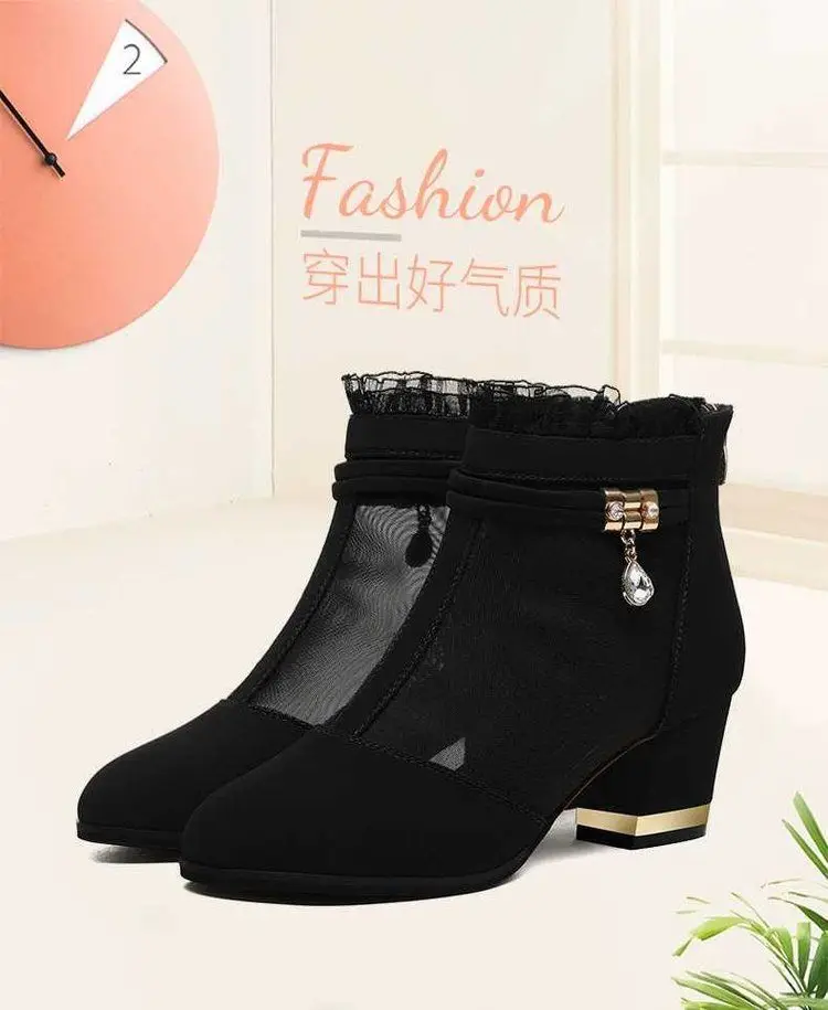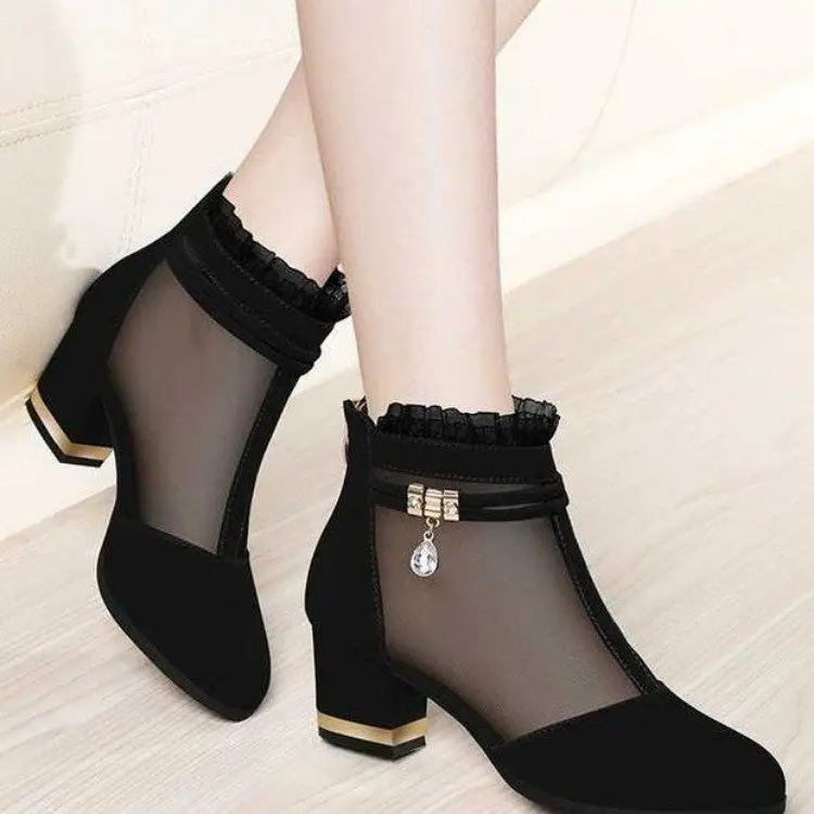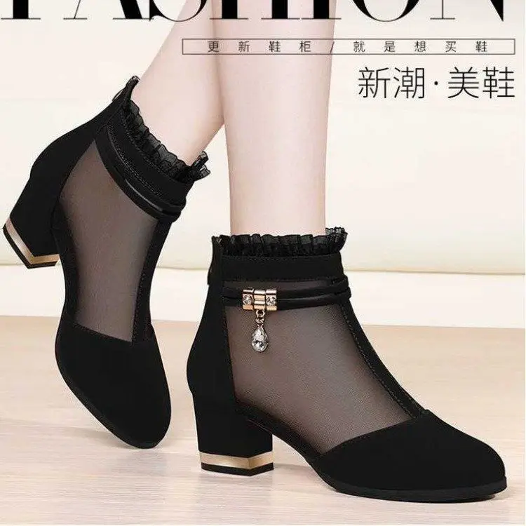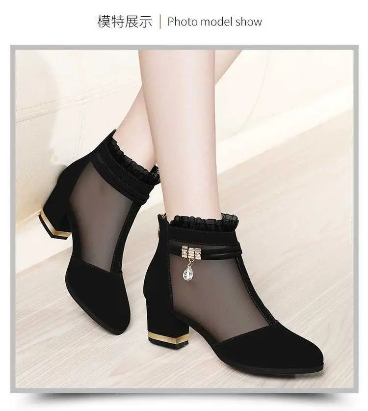 Сандалии женские на высоком каблуке, босоножки из сетчатой пряжи, на толстом каблуке, Короткие Туфли-трубки, обувь для женщин, однотонные