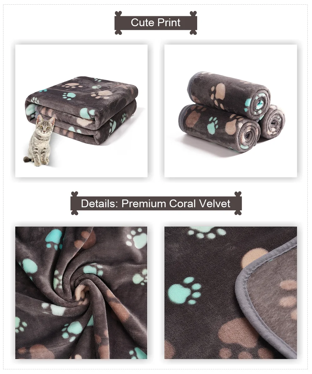 Одеяло для кошек, очень мягкое пушистое Флисовое одеяло премиум-класса с принтом лап, теплая фланелевая накидка для собак и щенков, 3 упаковки