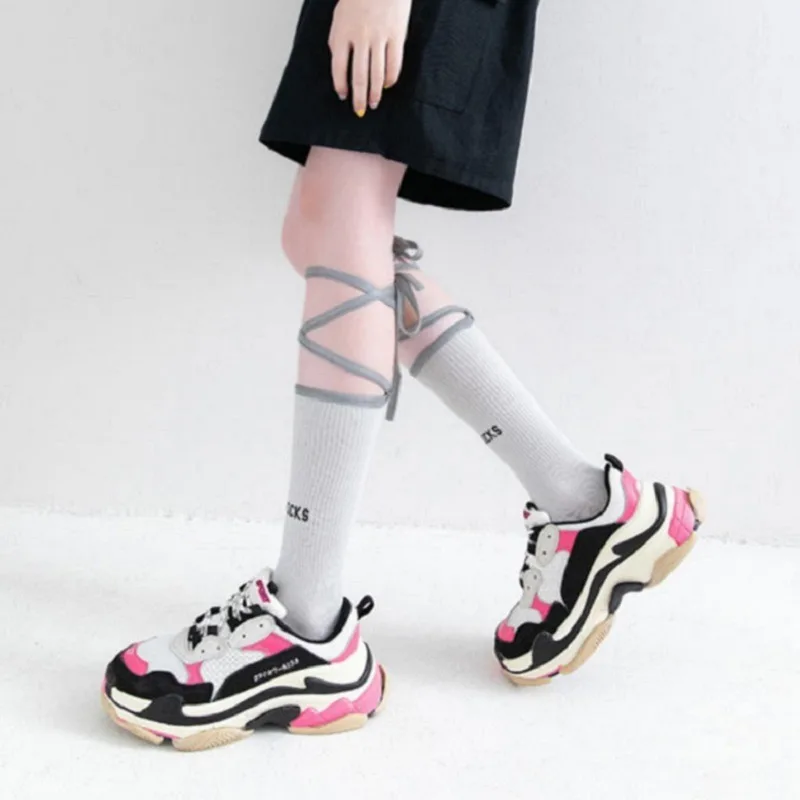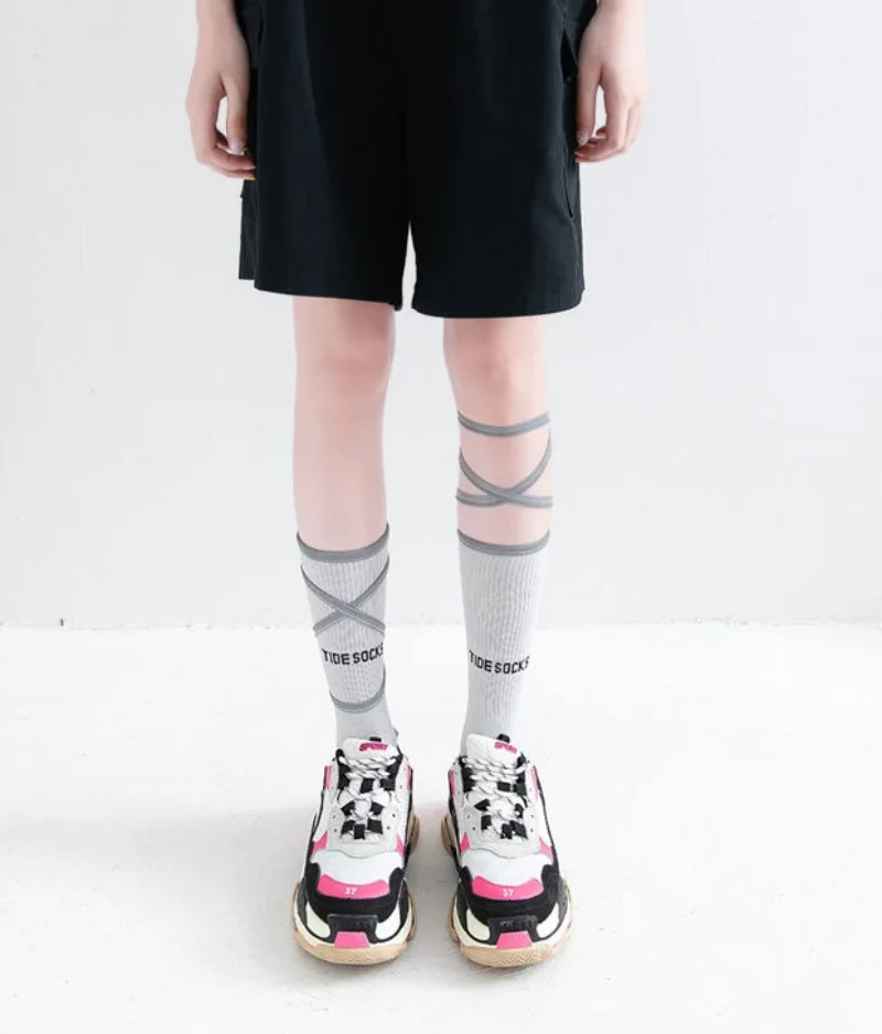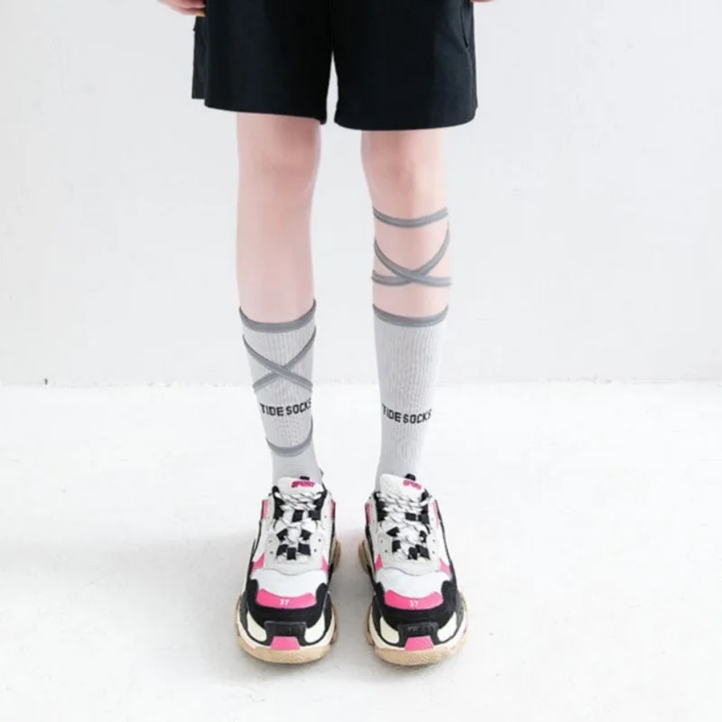 NiceMix Носки Женские Светоотражающие бандажные хлопковые японские флуоресцентные Звездные перекрестные чулки носки до икры корейские