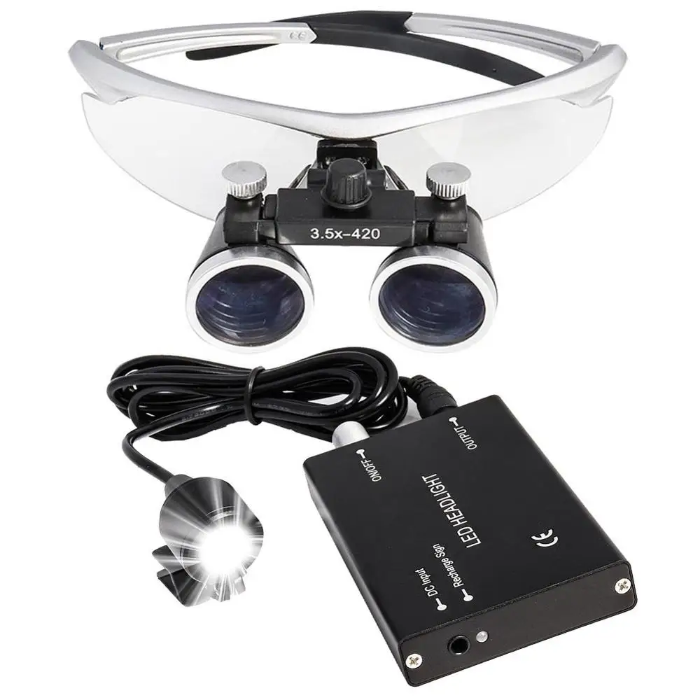 3,5x420 мм зубная Лупа Ультралегкая бинокулярная Лупа лабораторная медицинская Лупа зубная Лупа серебряная с 3 Вт фара