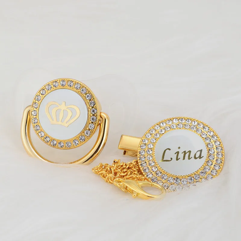 Зажим для соски MIYOCAR с именем на заказ, набор зажимов для соски с белой короной, набор зажимов для соски, роскошный уникальный подарок, PCW