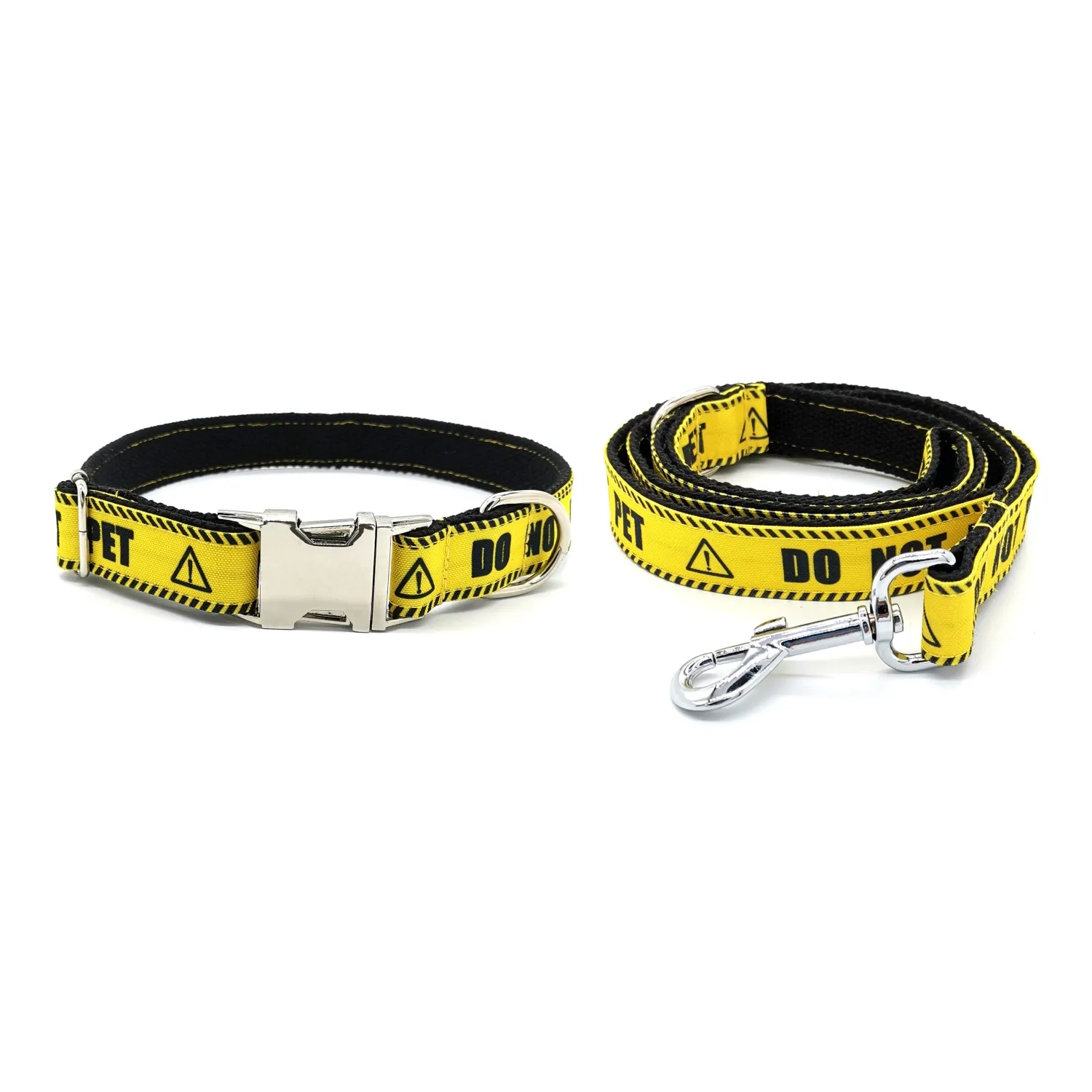 Персонализированный ошейник для домашних животных, предупреждающий знак, идентификационная бирка для щенков и кошек, регулируемое имя под заказ, красный, желтый, не для домашних животных, базовые ошейники для собак, набор поводков