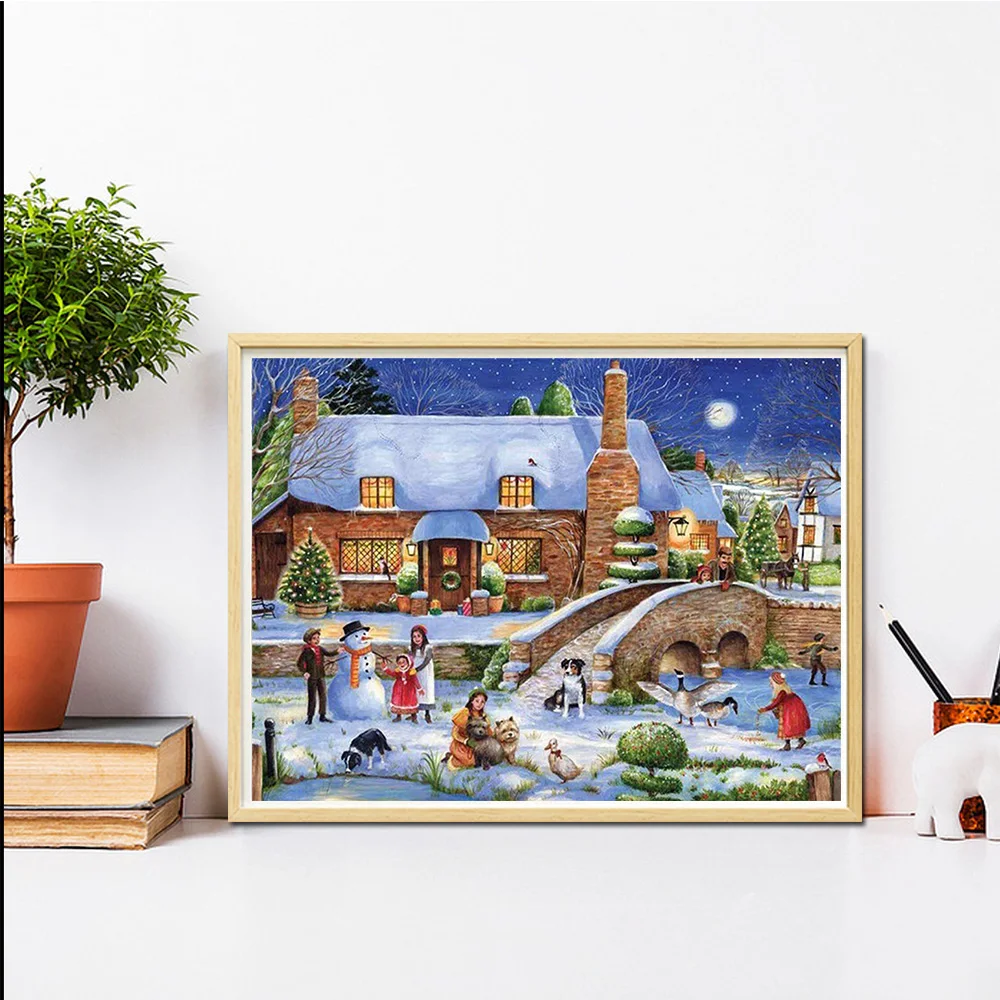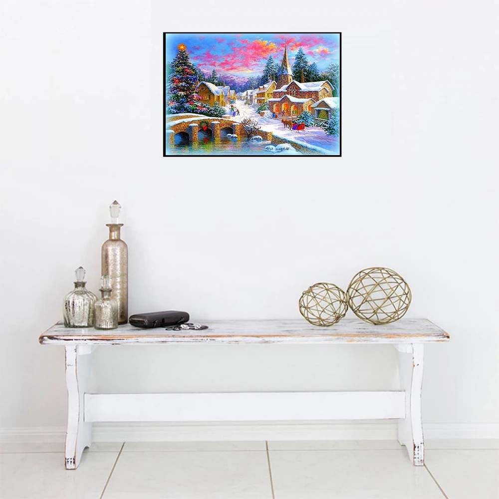 Алмазная 5D картина сделай сам, Рождественский пейзаж, полная вышив...