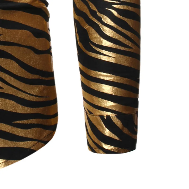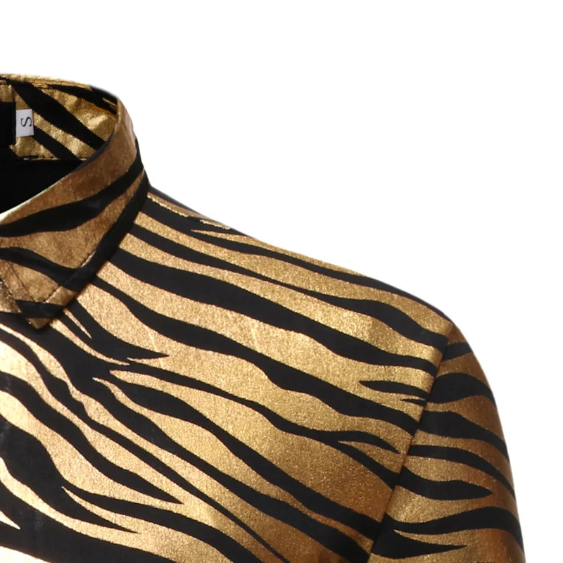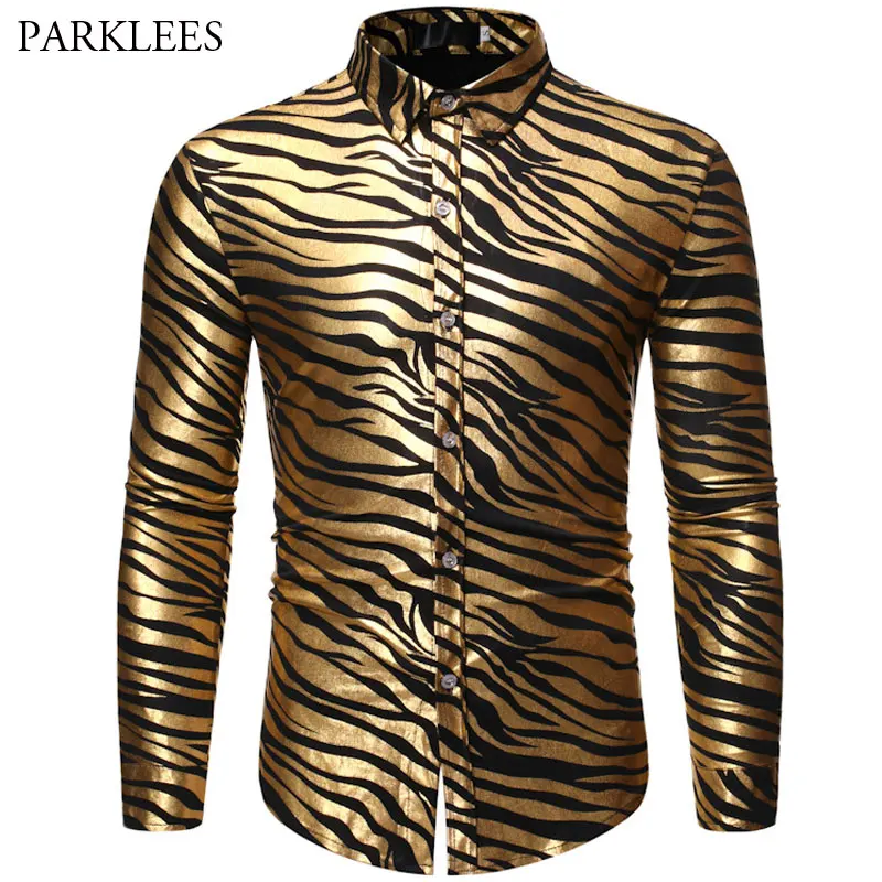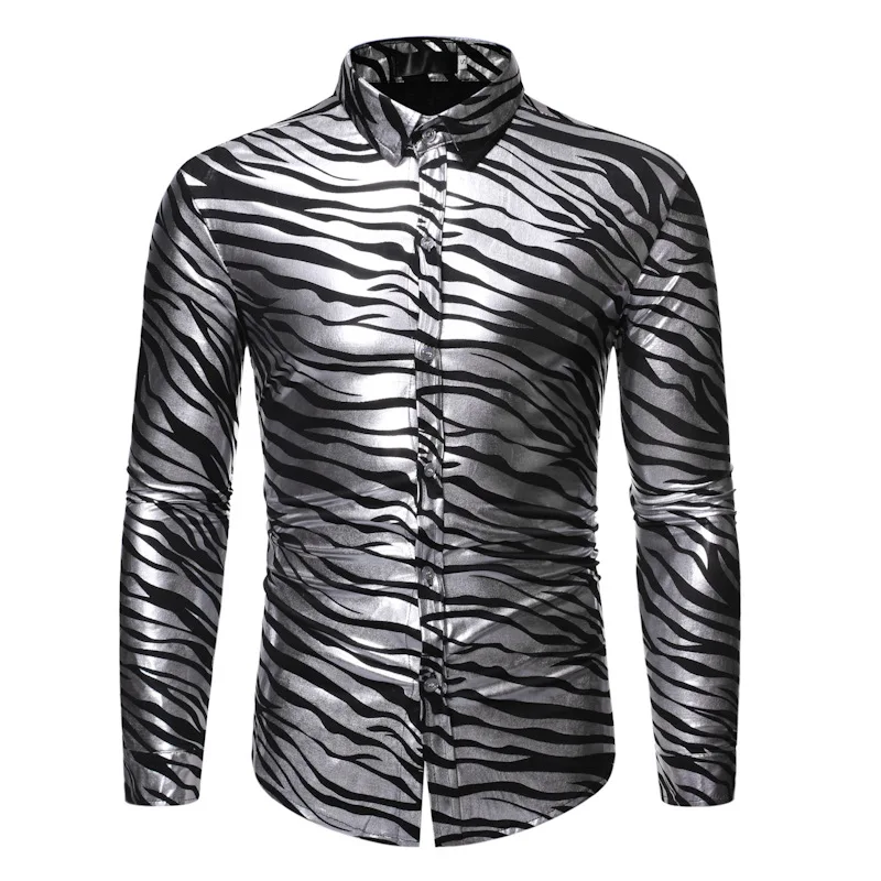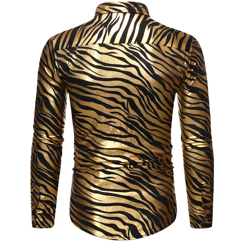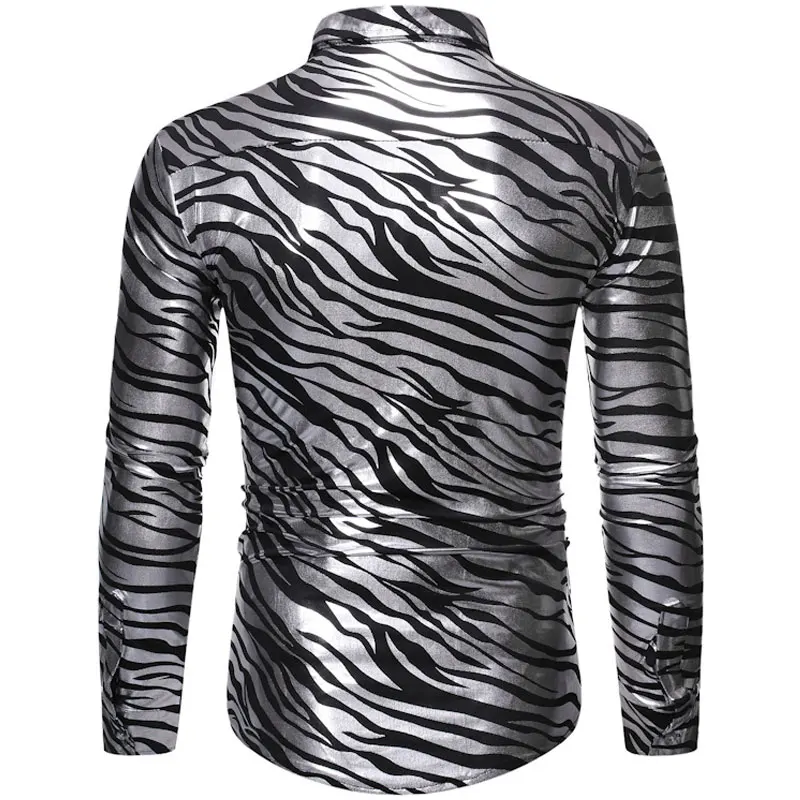 Футболка металлик мужские рубашки с принтом зебры для дискотеки, Мужские приталенные классические рубашки с длинным рукавом, хипстерские рубашки в стиле хип-хоп для клуба, вечеринки, выпускного вечера, для сцены