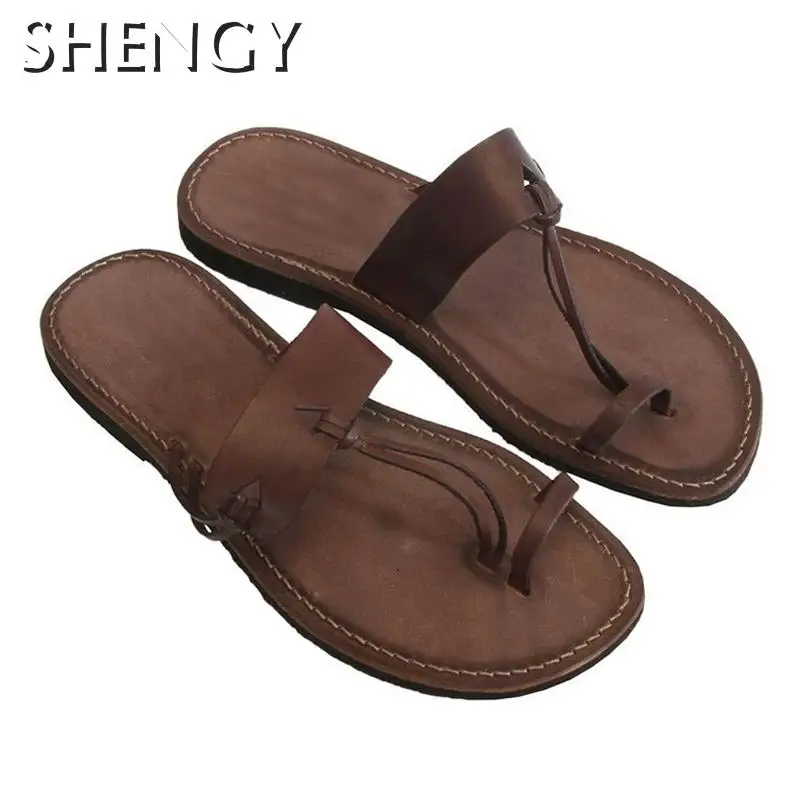 Сандалии мужские пляжные с открытым носком, нейтральная гладиаторские плоские сандалии в стиле ретро, Повседневная Уличная обувь, большие размеры 48, лето 2020