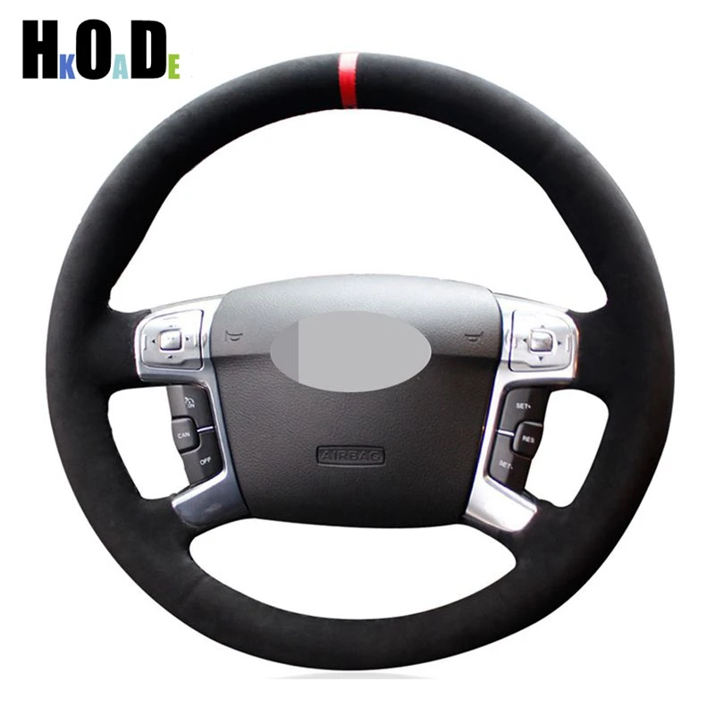 Чехол на руль автомобиля для Ford S-Max 2006-2011 Galaxy 2011-2015 Mondeo Mk4 2007-2013 сделай сам, прошитая вручную, черная замша
