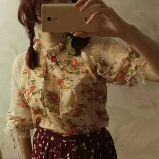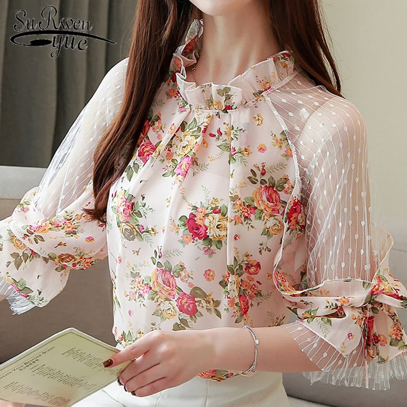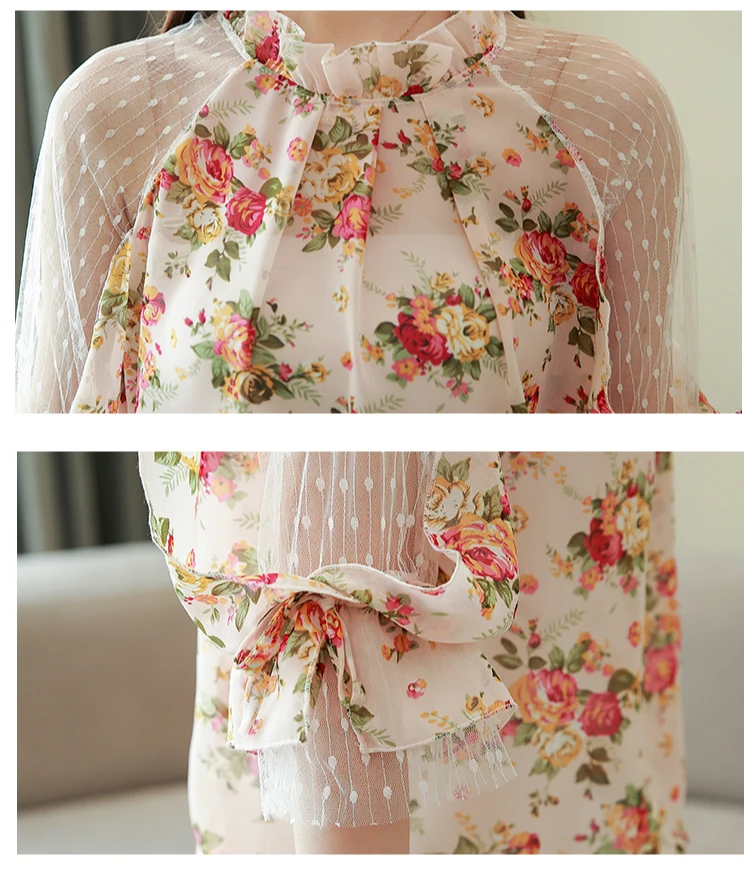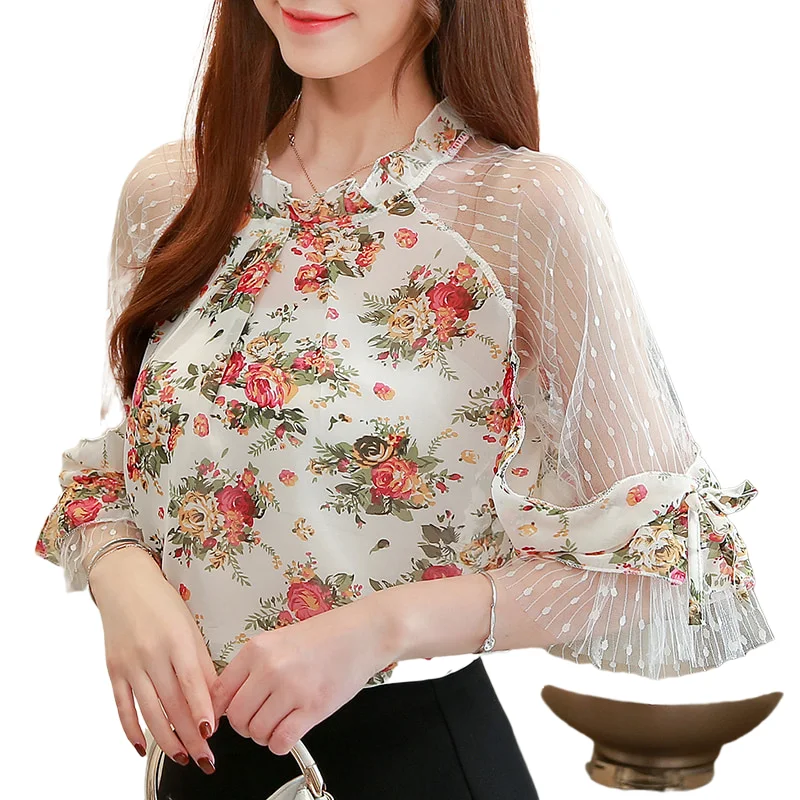 Блузка женская шифоновая кружевная с цветочным принтом, 2022