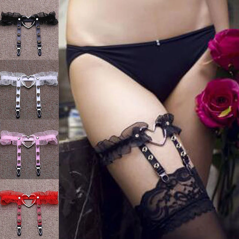 Зажимы для подвязок с заклепками; Пикантные женские босоножки для ночного клуба кожа Сердце бар подвязки на ногу, ремни окружности