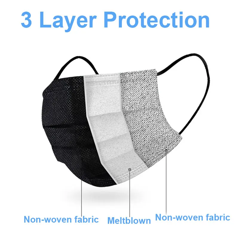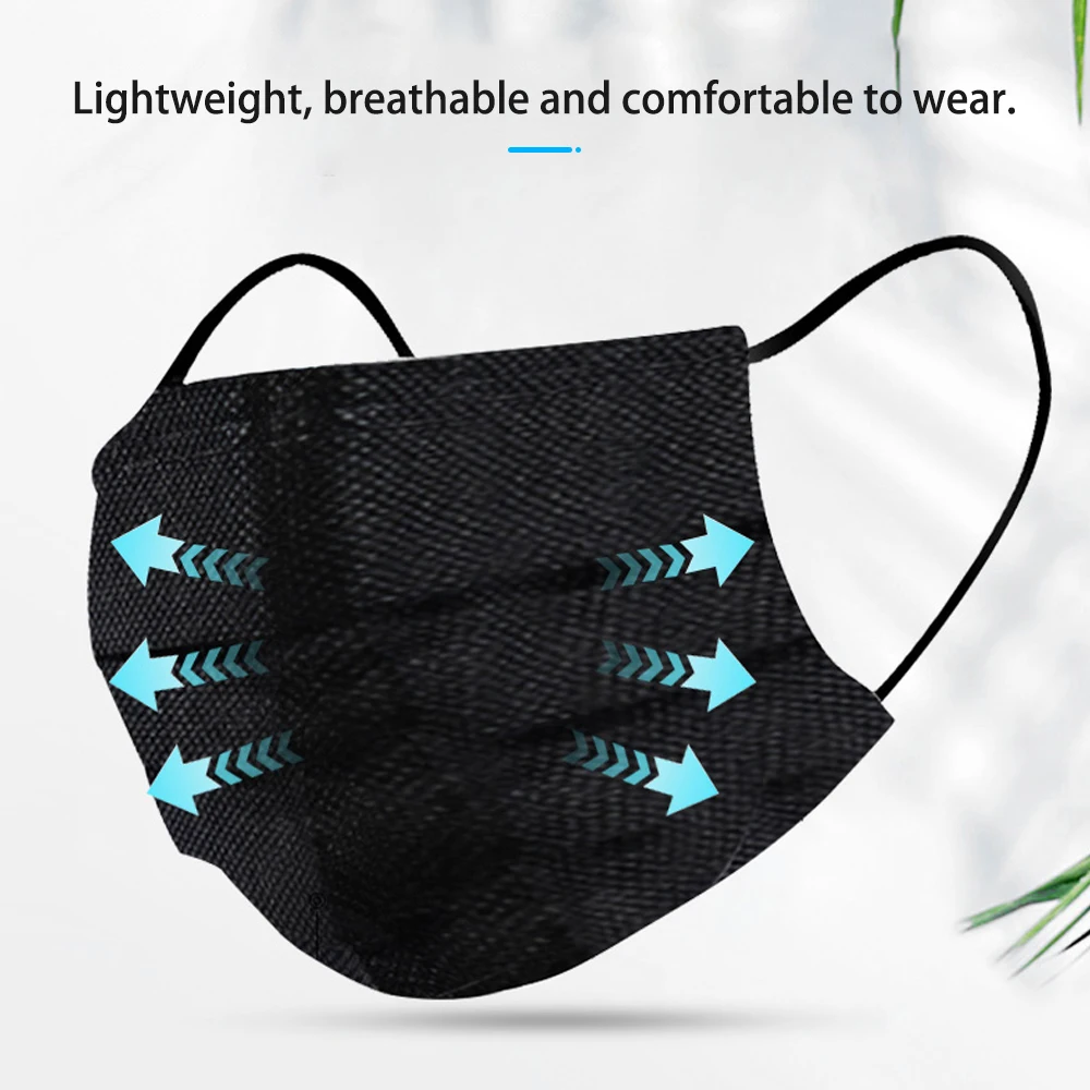 Маска одноразовая трехслойная Нетканая для лица, фильтр тканевый, защитная маска с петлями для ушей, PM2.5, черная, 10-200 шт.