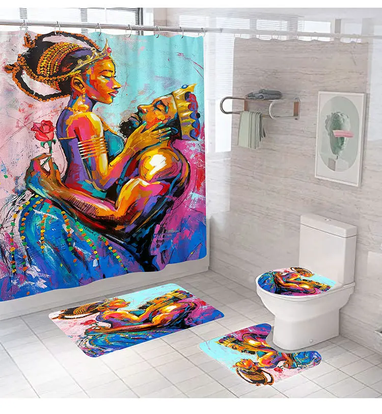 Набор штор для душа для девочек в Африканском и американском стиле с ковриком, ковровым покрытием, Женская перегородка для ванной и туалета, украшение для дома