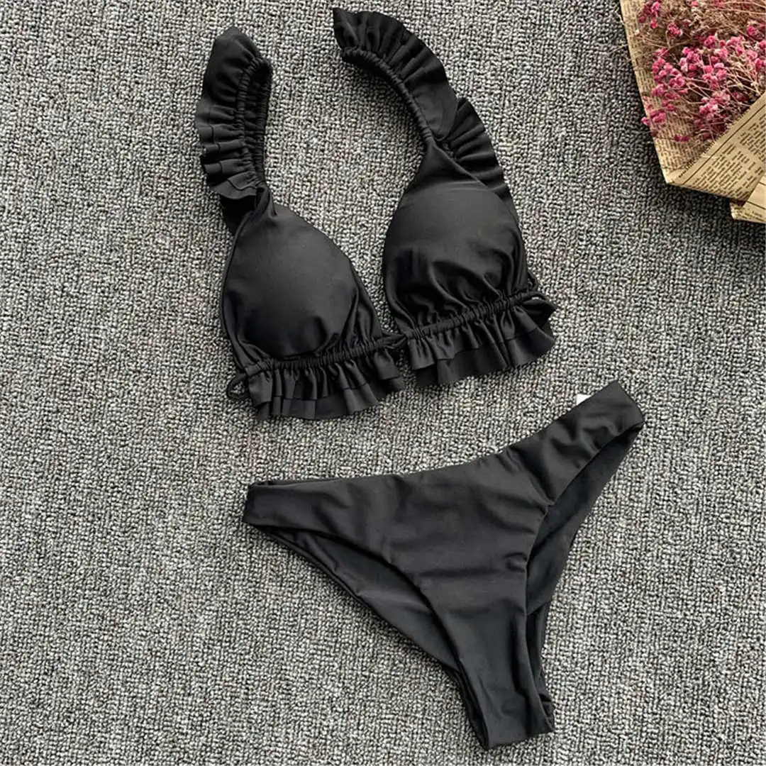 Новинка 2021, сексуальное бикини с оборками и лямкой на шее, Женска...
