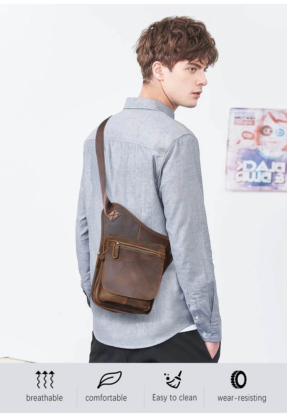 Мужская маленькая дорожная сумка-мессенджер из натуральной кожи, черная забавная поясная сумка, модель 2020, 6915
