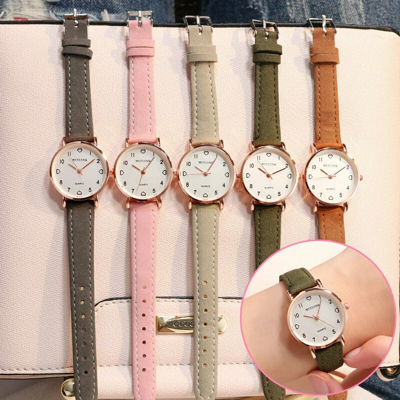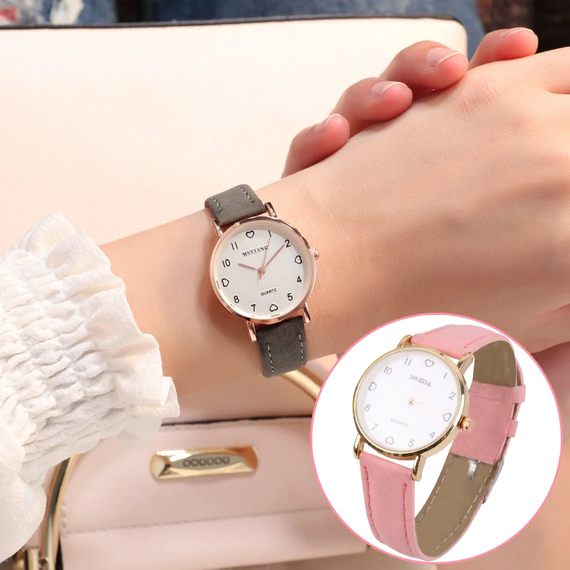 Винтажные женские милые аналоговые кварцевые кожаные ремешки, повседневные уличные спортивные наручные часы, ювелирные изделия