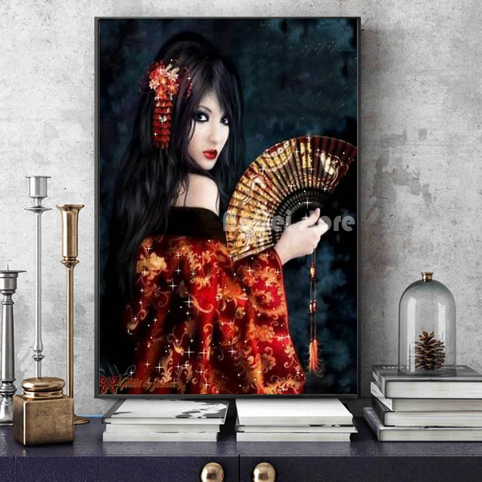 Полностью квадратнаякруглая дрель 5D DIY Алмазная картина "Японская гейша" 3D Алмазная вышивка крестиком домашний Декор подарок