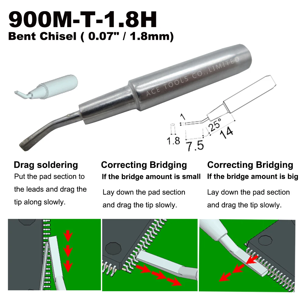 Наконечник для пайки 900M-T-1.8H, изогнутый 1,8 мм для Hakko 936 907, флейта Milwaukee 64-053 Yihua 936 X-Tronics 3020, сварочный наконечник