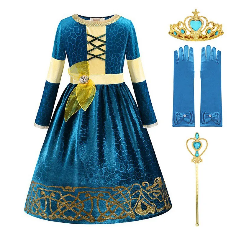 Ame: нарядный костюм принцессы Мериды для девочек, храбрые Роскошные нарядные платья на Хэллоуин, темно-зеленая вечерние чная одежда для От 2 до 10 лет годаМатериал: хлопокРазмер: 100-110-120-130-140-150Тема: платье Принцесса МеридаСтиль: костюм для девочекПосылка: на ваш выбор 1 пакет OPP