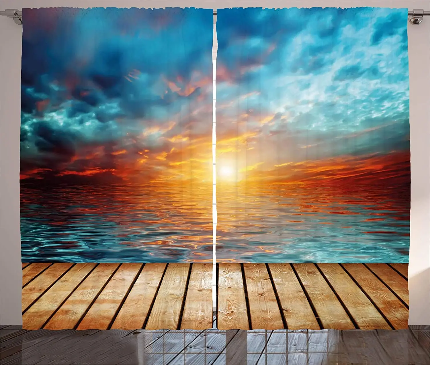 Океан занавески драматический Закат над морем Сумерки пейзаж Пляж Скайлайн побережье Фото Гостиная Спальня оконные шторы