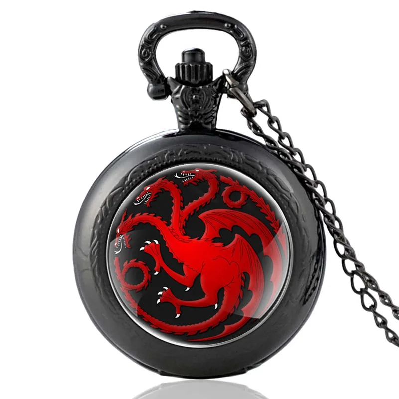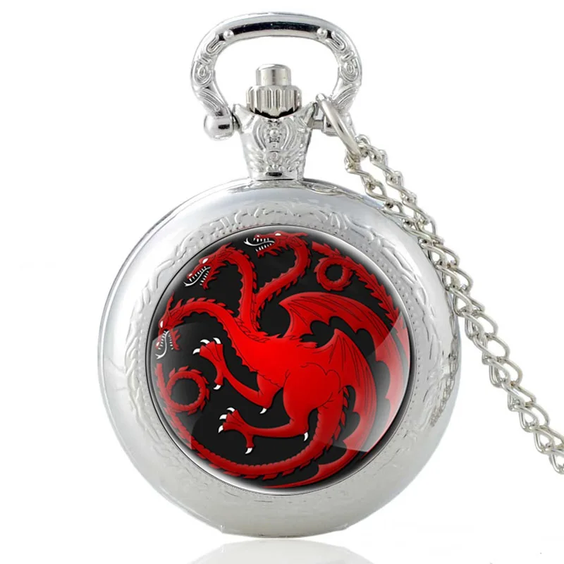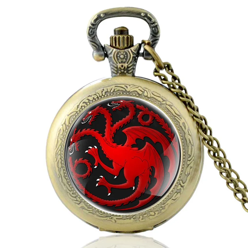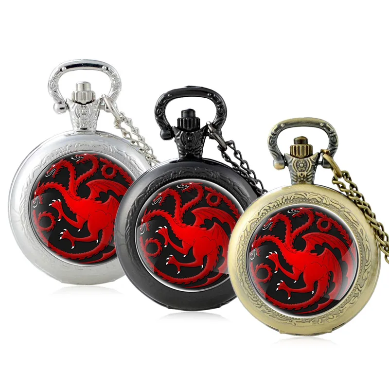 Классические кварцевые карманные часы с тремя головками из стекла дракона, кабошон, винтажные мужские и женские часы с подвеской и цепочкой