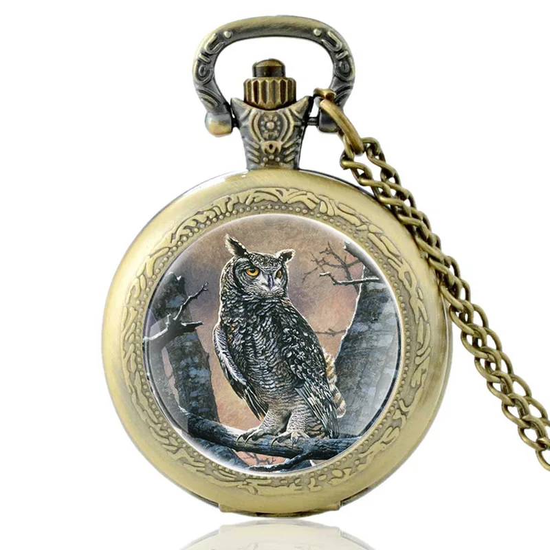 Классические арт сова стекло кабошон кварцевые карманные часы винта...