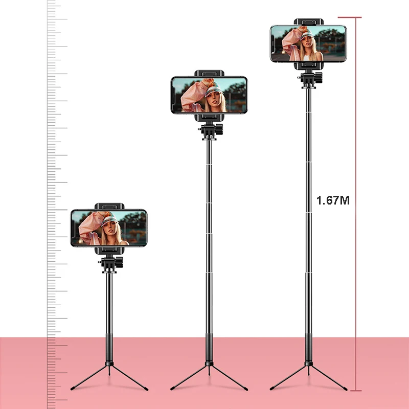 Выдвижной Штатив 1,67 м, селфи-Палка с Bluetooth, Беспроводной монопод с дистанционным управлением, таймер для селфи, затвор для IOS, Android
