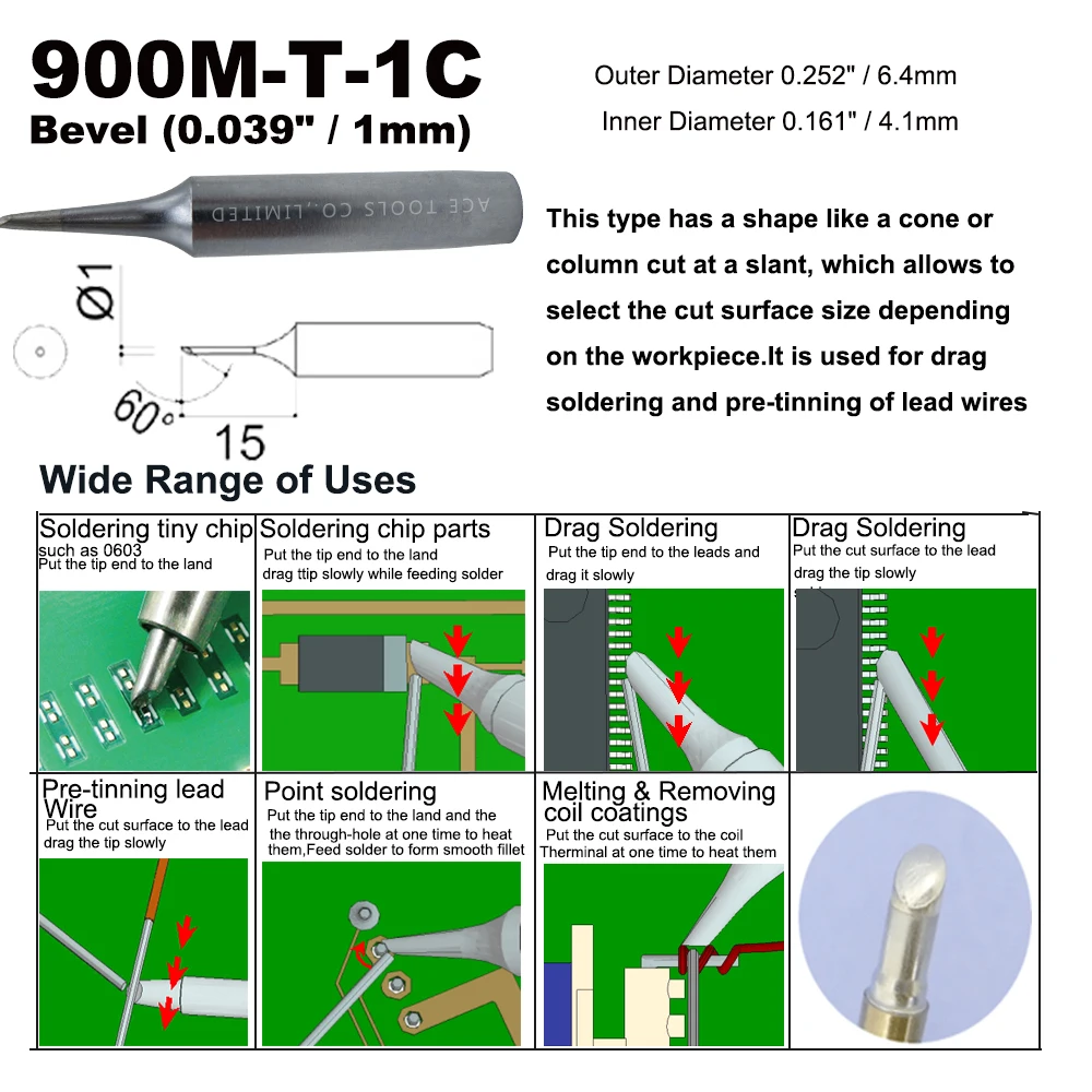 1. HAKKO 900M сменный паяльный наконечник, наконечник паяльника, наконечник ручки, наконечник припоя, наконечник карандаша (не HAKKO maker, но бренд "AiCE Tls")
