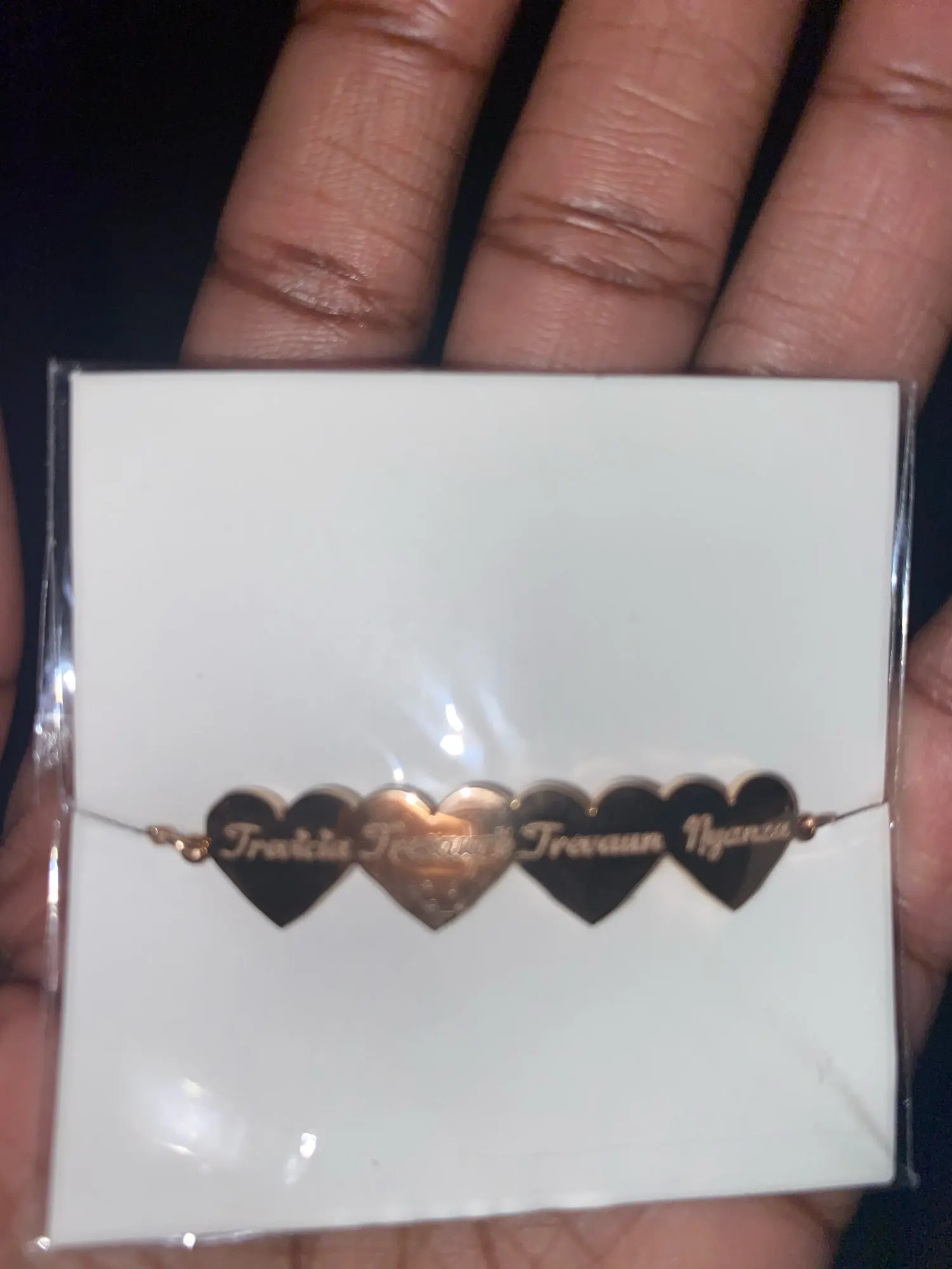 La pulsera es tal cual se ve pero los nombres no están grabados sino impresos y, pese a que pedí dos nombres muy cortos, no resultan muy legibles