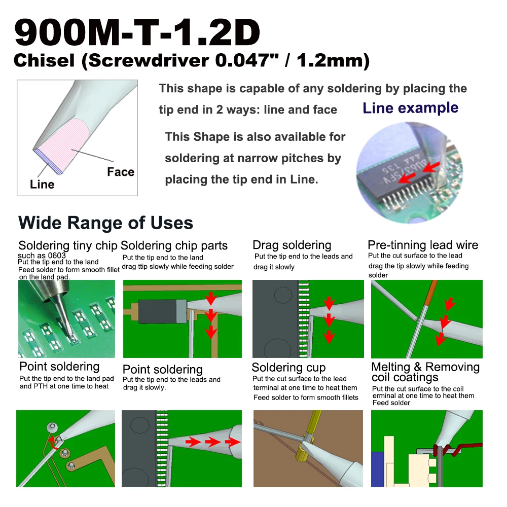 Наконечник для паяльника 900M-T-1.2D, зубило 1,2 мм для Hakko 936 907 Milwaukee, фрезер 64-053 Yihua 936 X-Tronics 3020