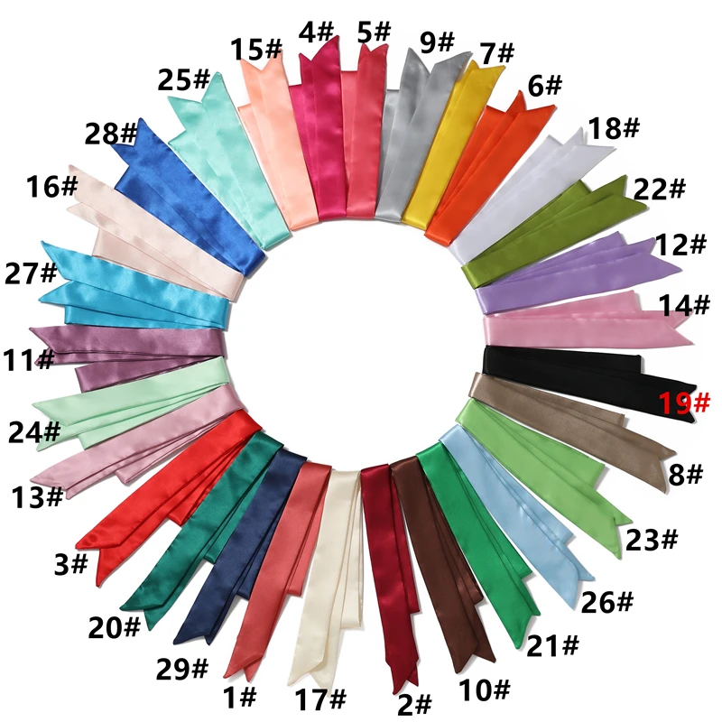 2022 длинная сумка, шарф, Женская повязка для волос, Женские аксессуары, однотонные шелковые обтягивающие шарфы, повязка на голову, атласная лента, галстук на шею