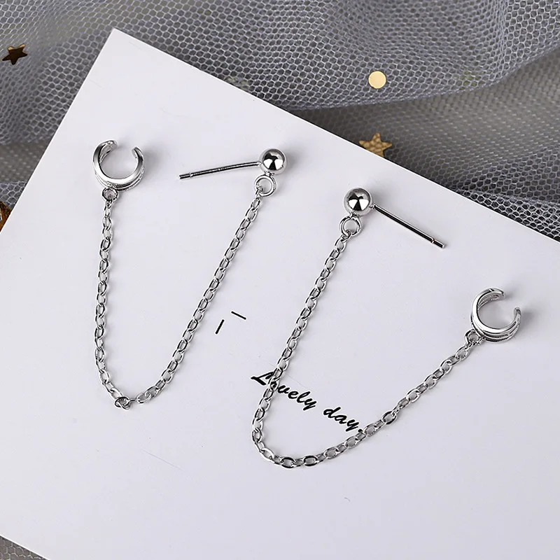 Серьги-гвоздики женские из серебра 925 пробы с кисточками