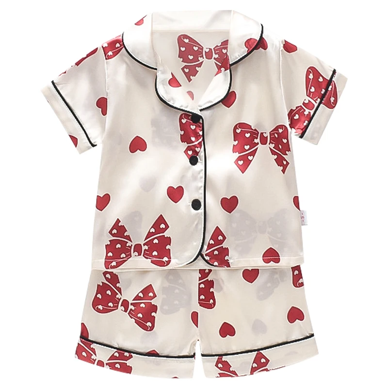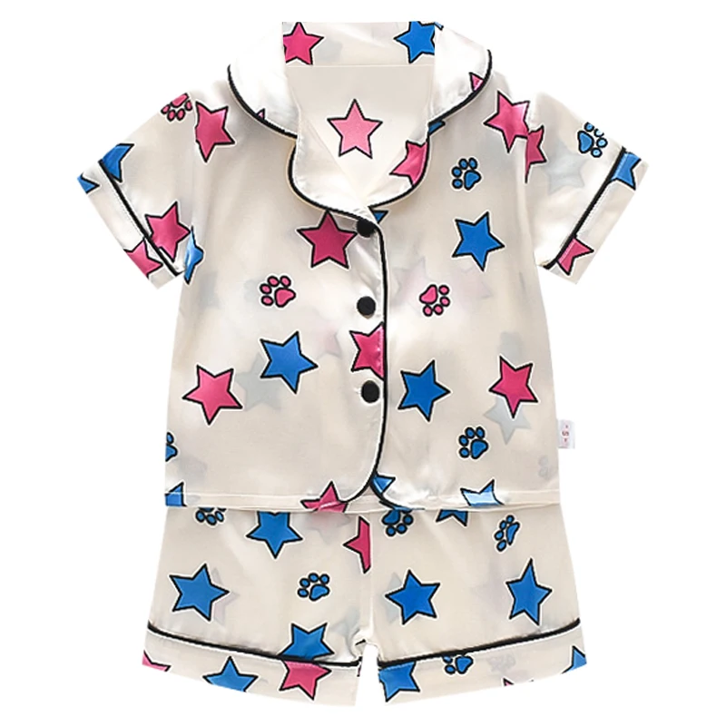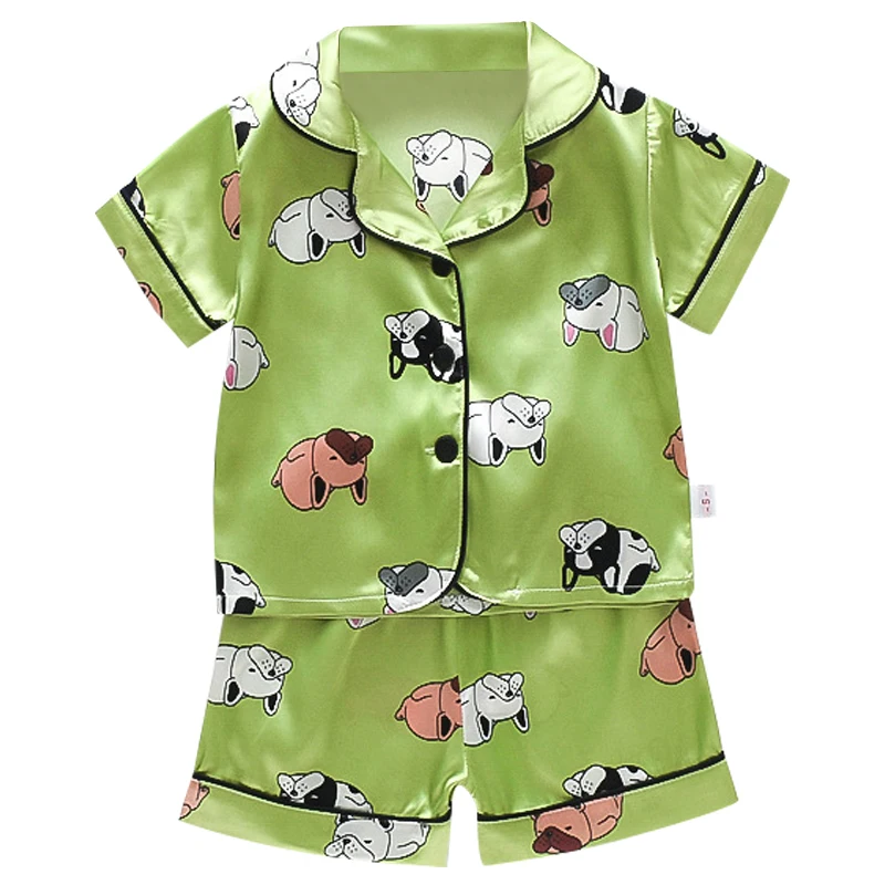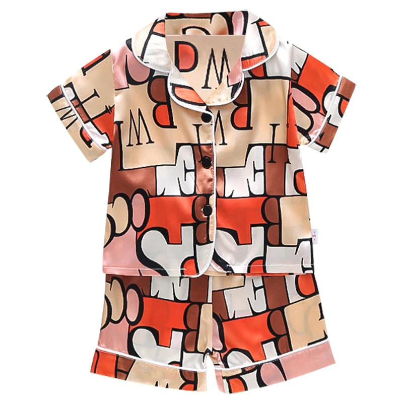 Пижама для мальчиков и девочек, шелковая, атласная, на пуговицах, 2...