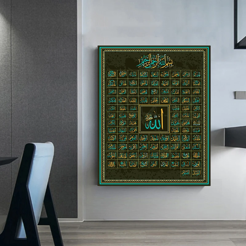 99 имена Аллах мусульманство ислам холст с каллиграфией арт золото живопись Рамадан мечеть плакат и печати настенные картины для дома