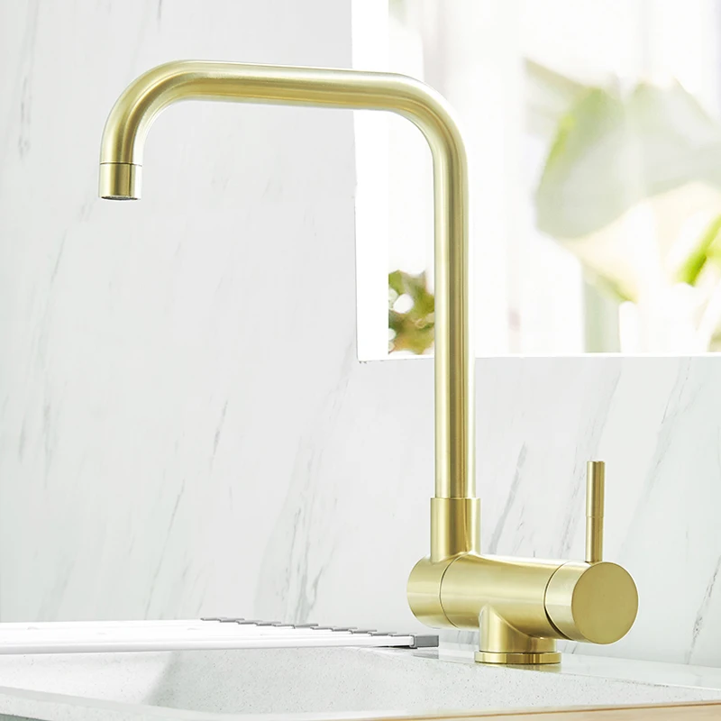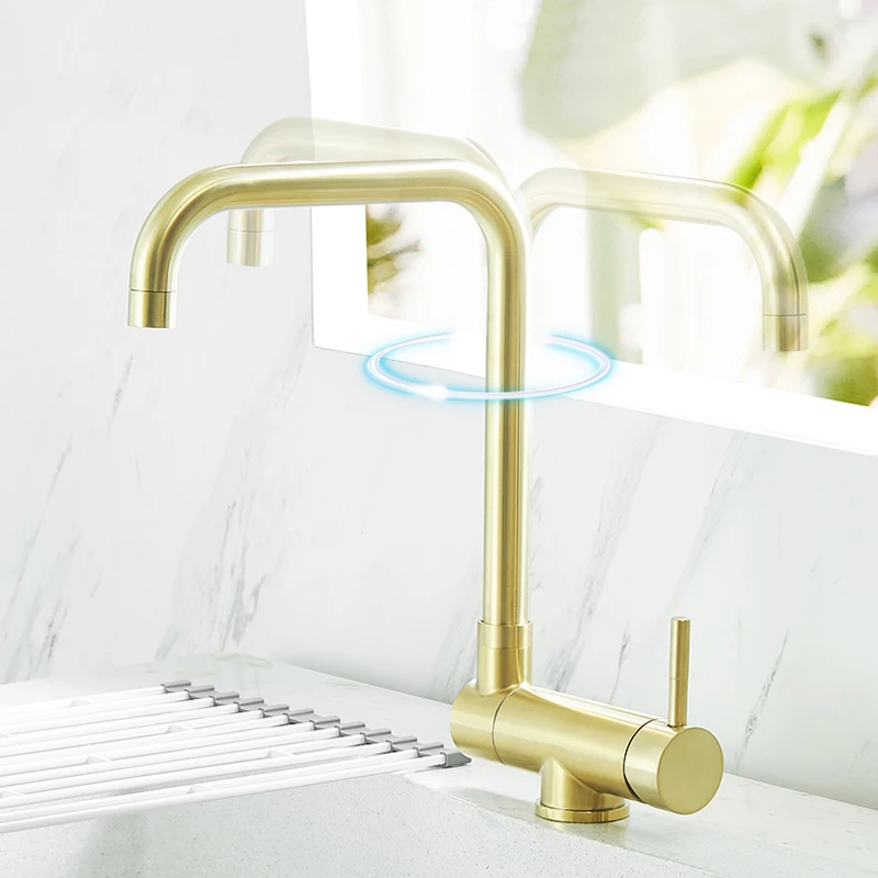 Новейший роскошный позолоченный смеситель для кухонной раковины из нержавеющей стали, складной вращающийся кран для горячей и холодной воды G1132