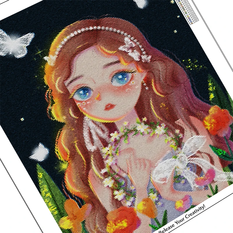 Алмазная живопись, полная выкладка, мультяшная девушка, мозаика, по...