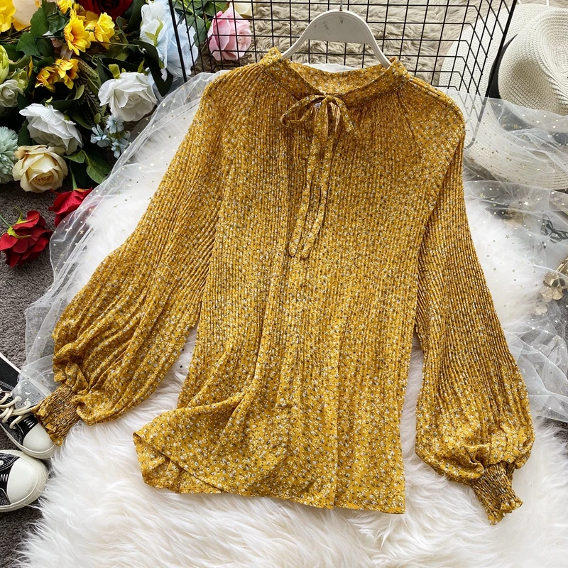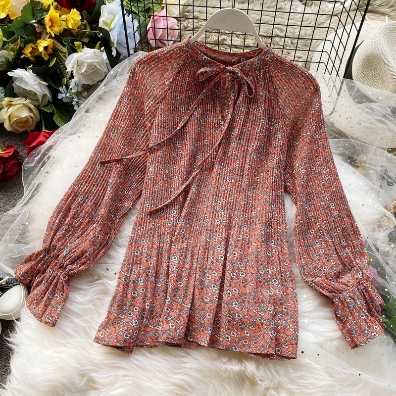 Наименование товара:Женские летние рубашки с длинным рукавом, свободная рубашка с круглым вырезом, рукавом-фонариком, бантом и длинными рукавами, женские топы, рубашка, блузка, женские футболки PL100