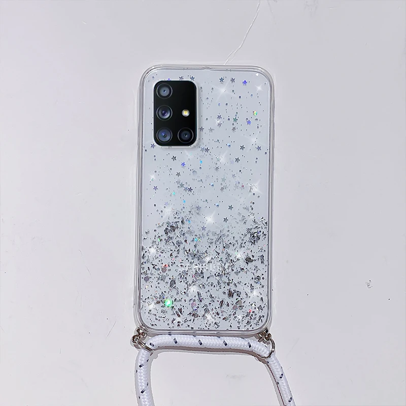 Прозрачный блестящий чехол с ремешком на шею для Samsung Galaxy A51 A71 S20 FE Ultra S10 Plus A02 A41 A12 A32 M52 A21s A31 S21 M51 A52 A72