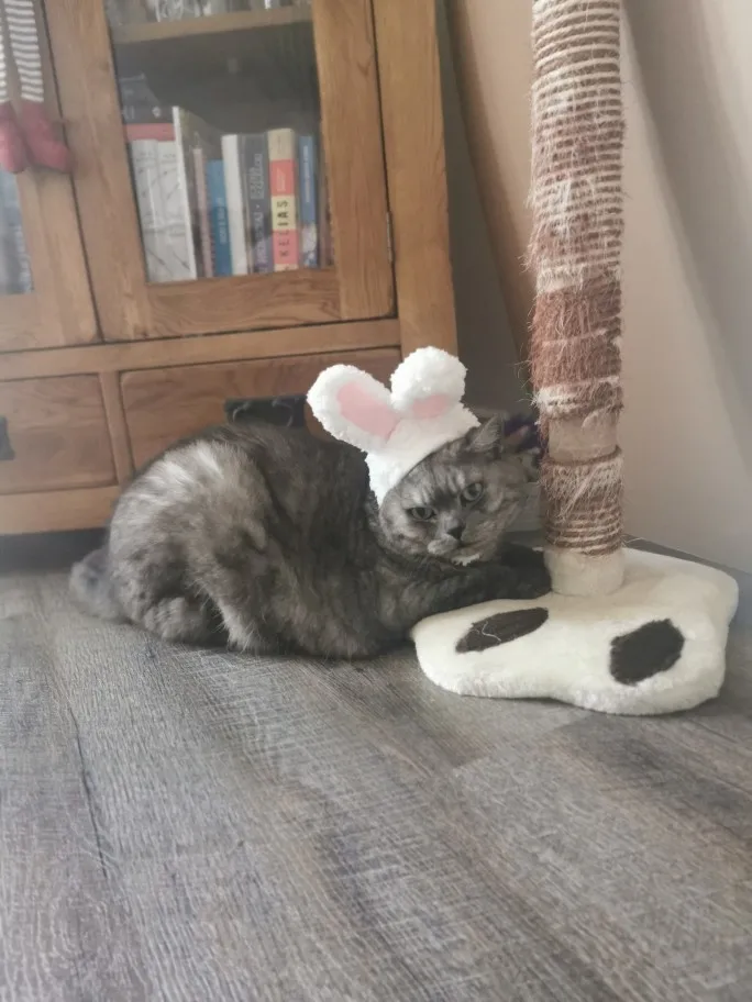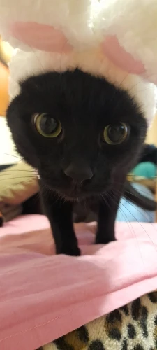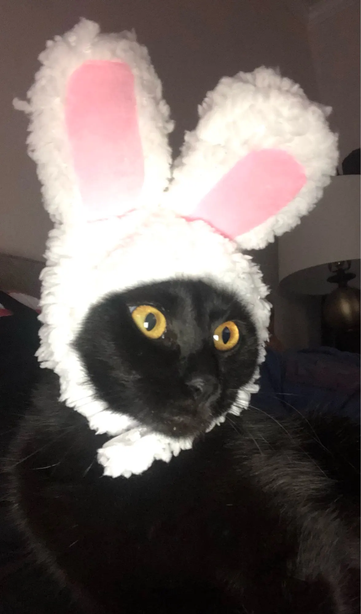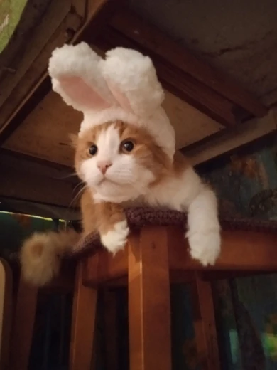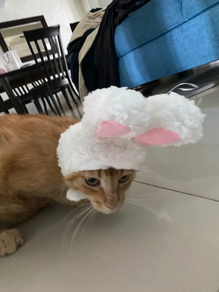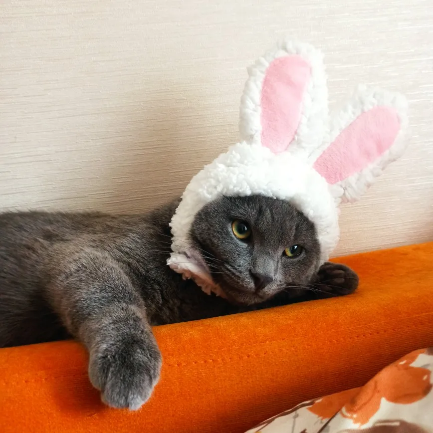 Уши кролика регулируемые и милые! Подходит для маленькой головы моего кота.