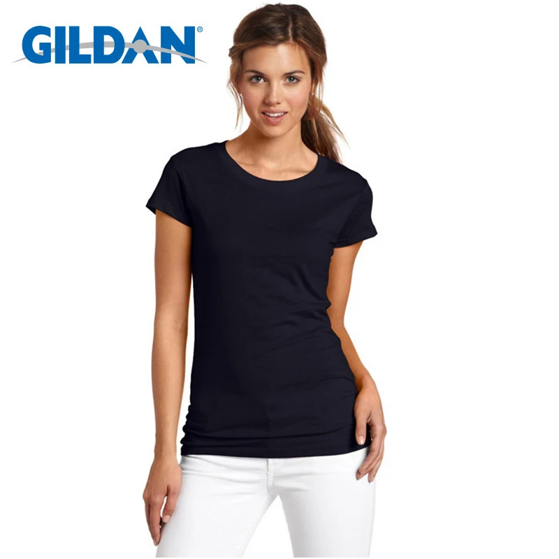 Футболка GILDAN Женская Базовая в стиле оверсайз, 100% хлопок, повседневный эластичный Топ с коротким рукавом, простая, на лето