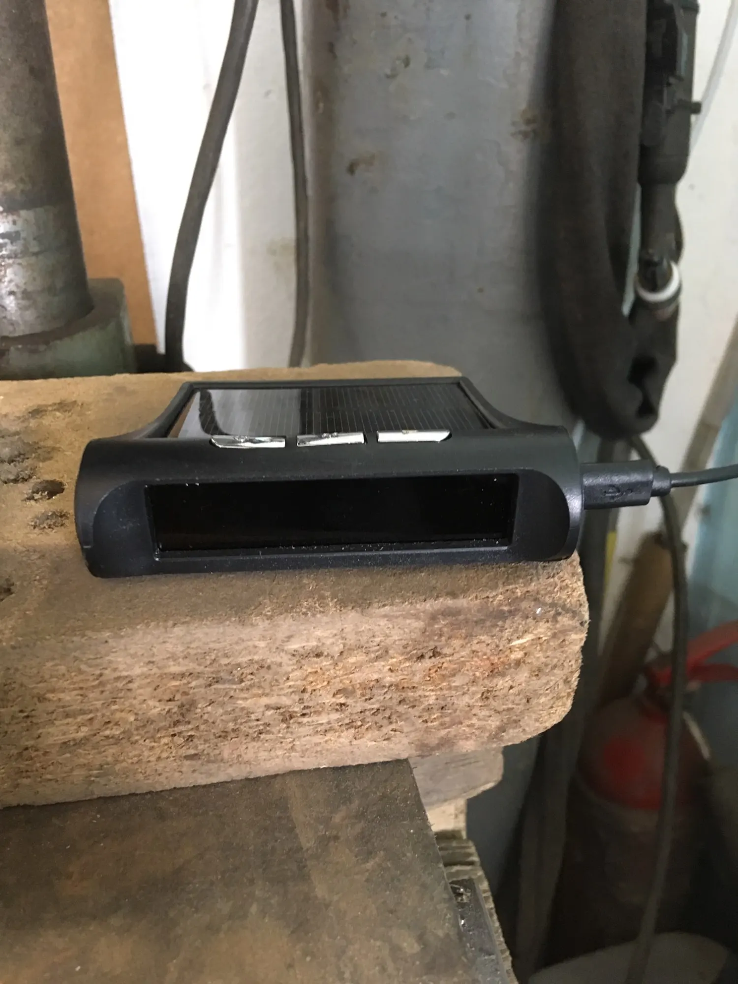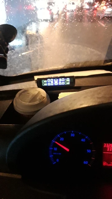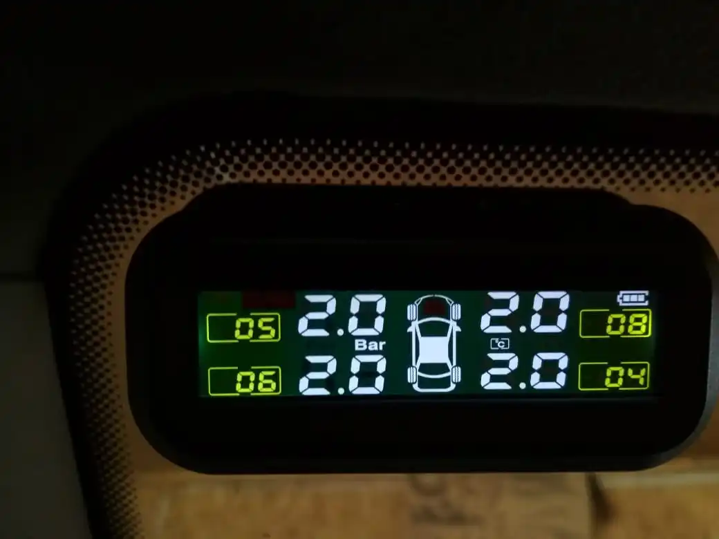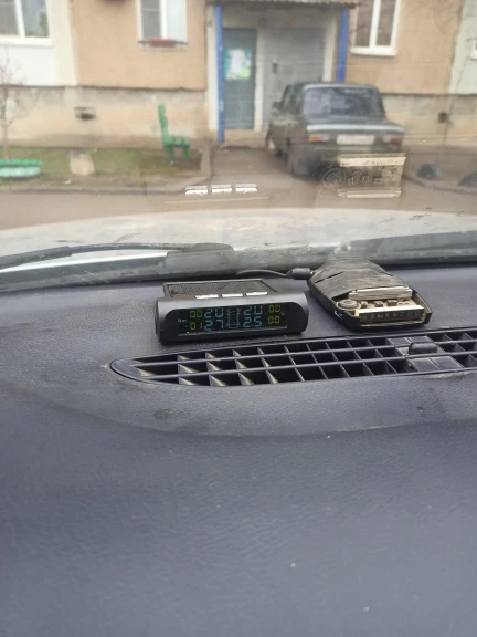 Интересная вещь. Может заряжаться также от солнца через лобовое стекло. Показывает температуру и давление в камерах колёс.